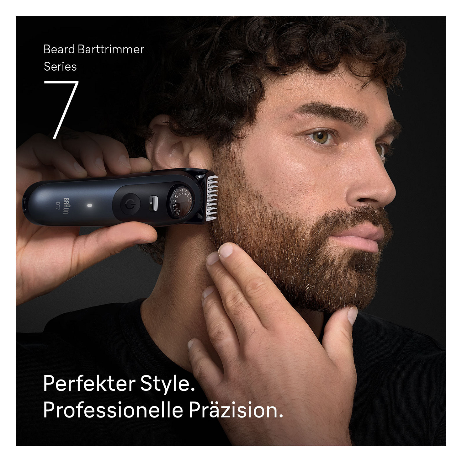 Perfektes Styling & professionelle Präzision: Der Barttrimmer Series 7 von Braun bietet dir mühelose Stylingkontrolle auf Knopfdruck.