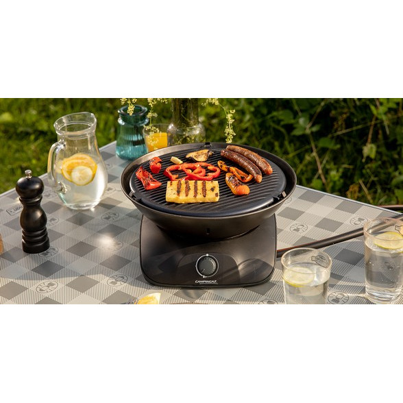 Wir präsentieren unseren allerersten Gaskartuschen betriebenen Tischgrill mit flachem Design, der ein 360° Grill erlebnis ganz bequem im Sitzen vom Tisch aus ermöglicht. Der Campingaz® 360 Grill bietet umfangreiche Grillund Kochmöglichkeiten mit der integrierten, gerippten Grillplatte, einer flachen Kontaktgrillplatte sowie Topfträgern zum Kochen wie auf einem Herd. Der praktische Grill wird komplett vormontiert geliefert und fügt sich mit seinem schicken, aber schlichten Design harmonisch in die städtische Umgebung und in jedes Wohnwagenabenteuer ein. Leicht, kompakt und praktisch und daher für jede Situation geeignet, egal wohin es Sie verschlägt.