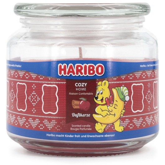 Haribo A2203. Form: Rund, Produktfarbe: Rot, Dufttyp: Apfel, Zimt. Höhe: 100 mm, Durchmesser: 10 cm, Gewicht: 300 g. Menge pro Packung: 1 Stück(e), Material Kerzenhalter: Glas
