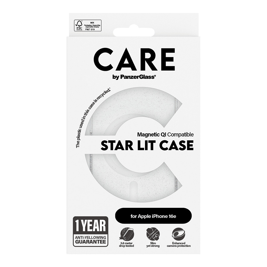 Eine unserer beliebtesten Hüllen. Eine auffällige Hülle für den roten Teppich und all die glitzernden Nächte, an die man sich gerne erinnert. Phänomenaler Schutz. 3,6 Meter Falltest in allen Winkeln und Ecken. Die Star Lit Hülle aus recyceltem Plastik ist für das kabellose Qi-Laden konzipiert. Ohne Wenn und Aber: 1 Jahr Anti-Vergilbungs-Garantie.