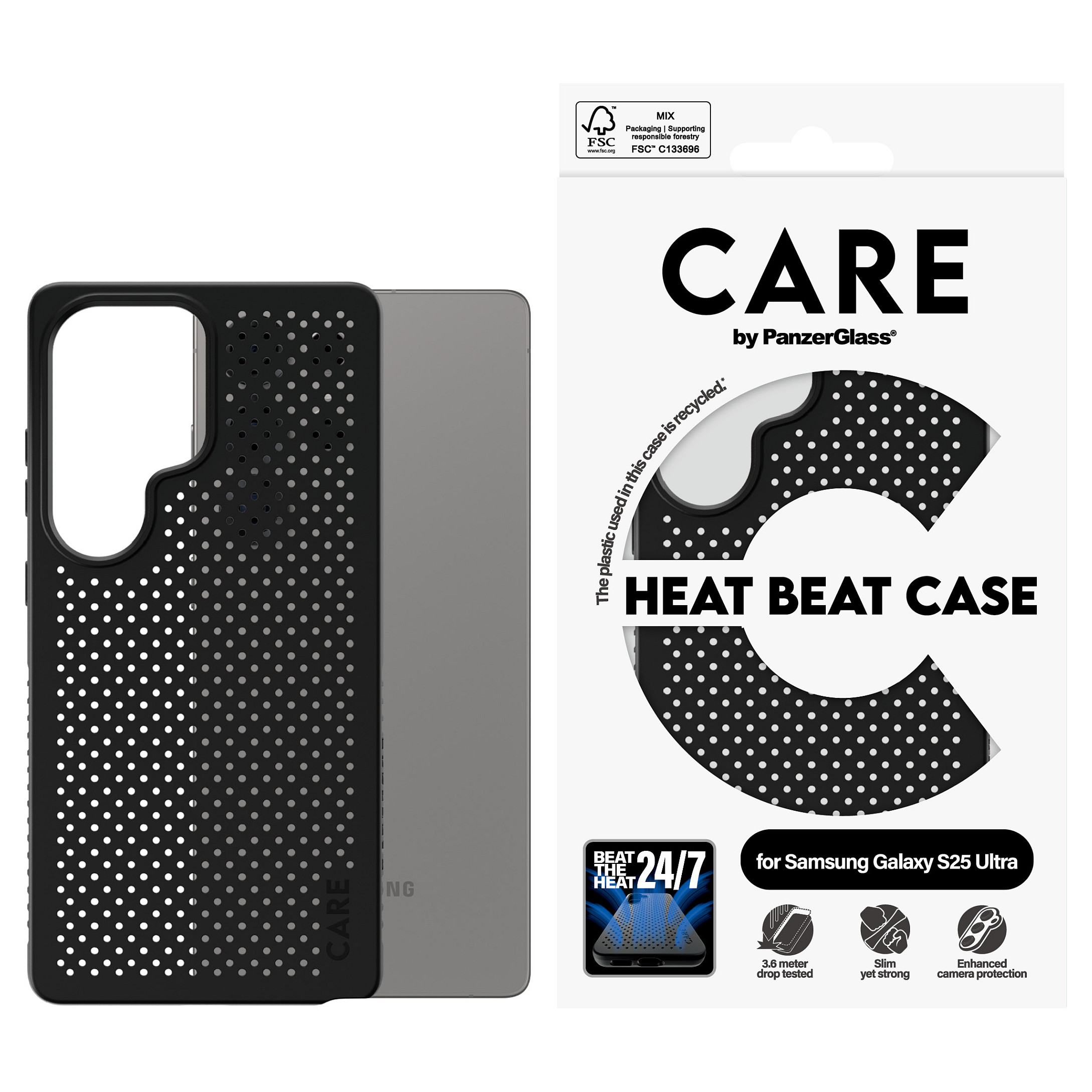 Eine kühle Hülle, die dein Handy auch in der Hitze reibungslos laufen lässt. Egal, ob du in der Sonne, in der Stadt, im Bus oder beim Zocken bist, diese Hülle leitet die Wärme effizient ab und hält dein Handy kühl. Das schützt auch den Akku und verhindert, dass dein Handy überhitzt und ausfällt.Mit ihrem kühnen Design und ihrem phänomenalen Schutz wurde die Hülle aus einer Höhe von 3,6 Metern an allen Ecken und Winkeln fallgetestet. Diese ultradünne, leichte Hülle ist aus recycelten Materialien hergestellt und unterstreicht deinen persönlichen Stil. Sie ermöglicht außerdem kabelloses Qi-Laden und bietet einen optimalen Schutz für die Kamera.