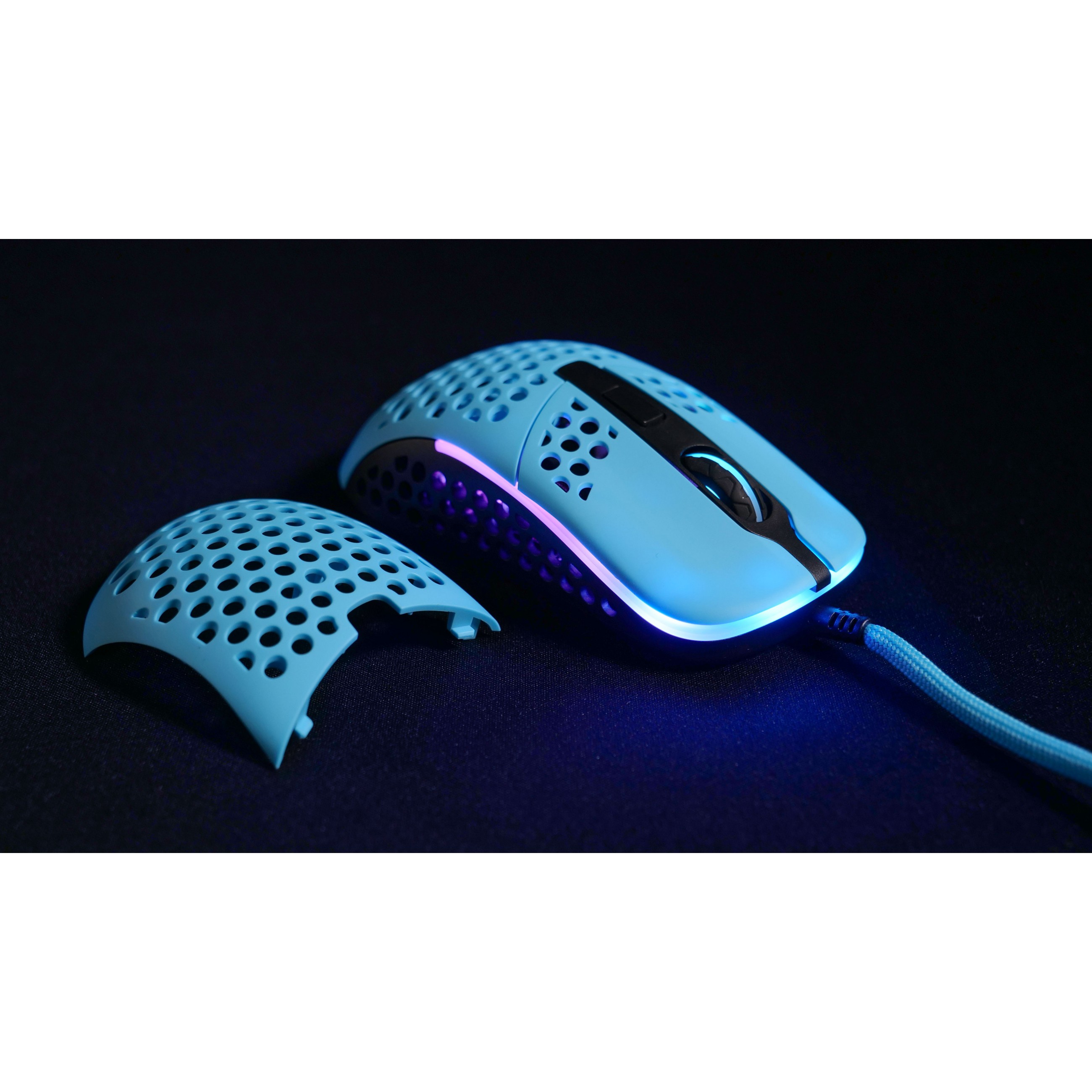 CHERRY XTRFY M42. Formfaktor: Beidhändig. Bewegungerfassungs Technologie: Optisch, Geräteschnittstelle: USB Typ-A, Bewegung Auflösung: 16000 DPI, Tastentyp: Gedrückte Tasten, Scroll Typ: Rad, Beschleunigung (Max.): 50 G. Farben der Beleuchtung: Multi. Energiequelle: Kabel. Produktfarbe: Blau