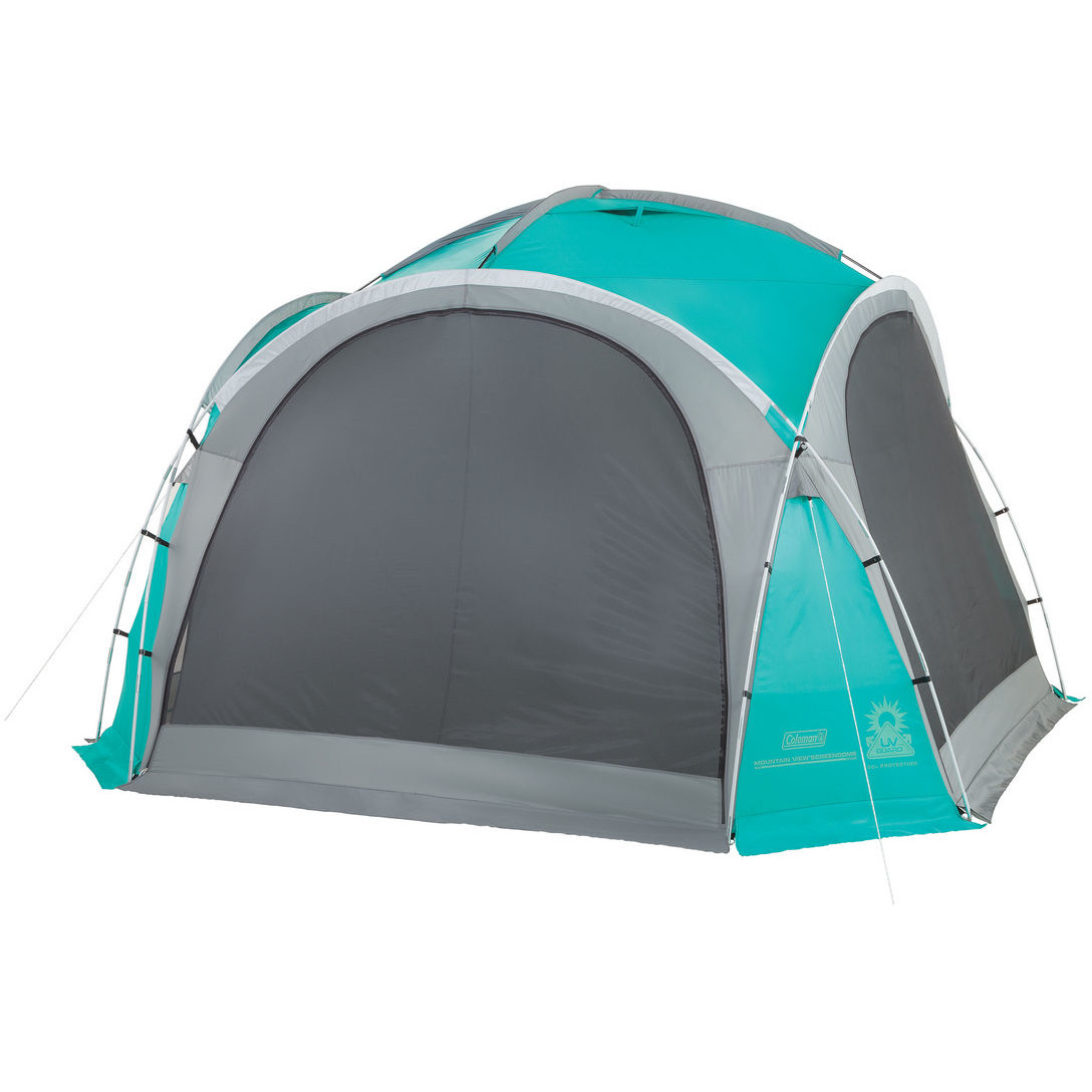 Coleman Event Dome L. Wohnbereich: 13,32 m², Wasserdichtebewertung des Zeltstoffes: 3 m, Montagezeit: 10 min. Zweck: Camping, Produktfarbe: Grau, Türkis. Stangenmaterial: Fiberglas, Zeltfliegenschutzmaterial: Polyester. Höhe: 2180 mm, Gewicht: 11,7 kg. Verpackungsbreite: 640 mm, Verpackungstiefe: 225 mm, Verpackungshöhe: 225 mm