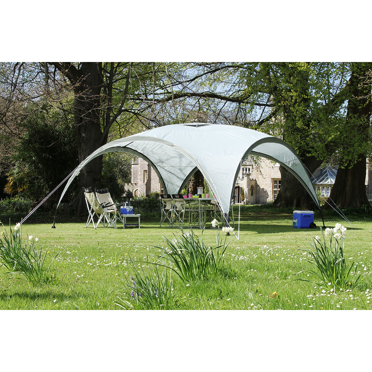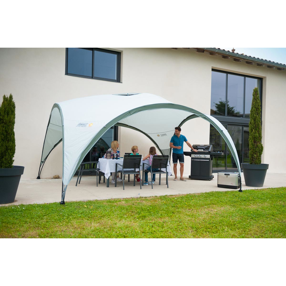 Coleman Event Shelter XL. Produktfarbe: Weiß, Färbung: Einfarbig, Abdeckungsmaterial: Polyester. Abmessungen (BxT): 4500 x 4500 m, Gewicht: 22 kg