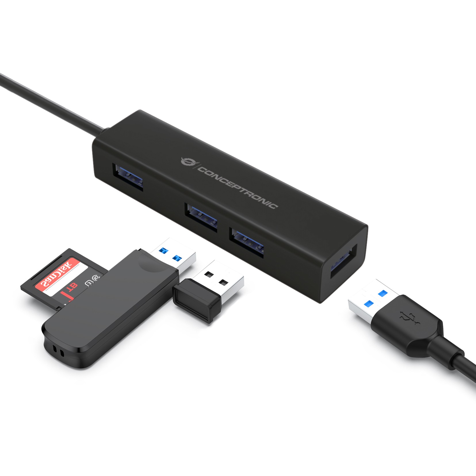 Dieser 4-Port-USB-3.0-Hub ermöglicht die Erweiterung der USB-Typ-C-Kapazität Ihres Geräts um 4 zusätzliche USB-3.0-Ports! HUBBIES07B ermöglicht eine einfache Ergänzung von bis zu 4 USB-kompatiblen Peripheriegeräten oder Gadgets zu Ihrem MacBook, Chromebook Pixel oder ähnlichen Notebooks mit USB-Typ-C-Ports.