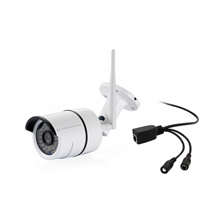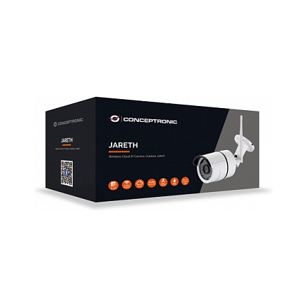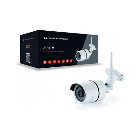 Conceptronic Jareth. Typ: IP-Sicherheitskamera, Unterstützte Positionierung: Drinnen, Übertragungstechnik: Verkabelt & Kabellos. Befestigungstyp: Decke/Wand, Produktfarbe: Weiß, Formfaktor: Patrone (Form). Drehungswinkel: 65°. Sensor-Typ: CMOS, Größe des Bildsensors: 25,4 / 2,7 mm (1 / 2.7"). Feste Brennweite: 6 mm