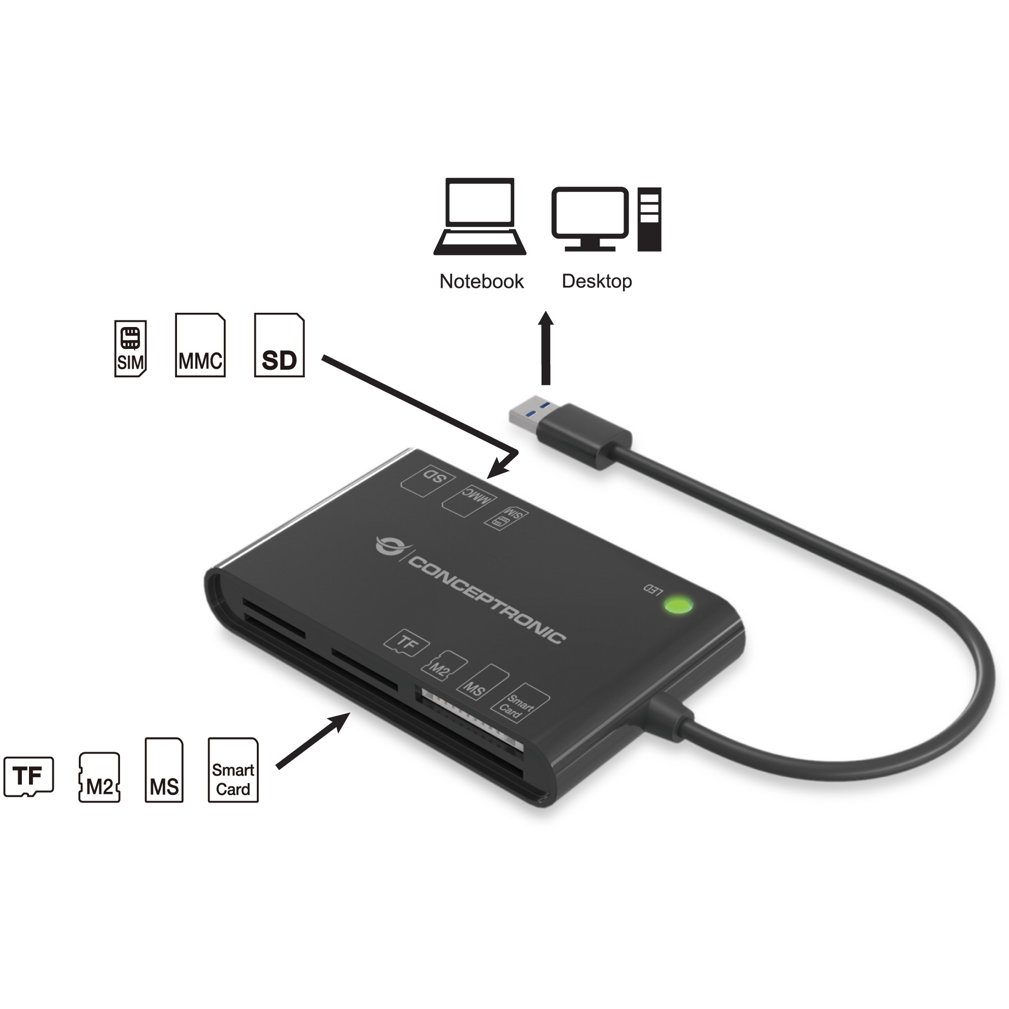 Kompatible Speicherkarten: MMC, MS Micro (M2), Speicherstick (MS), MicroSD (TransFlash), SD, SDHC, SDXC