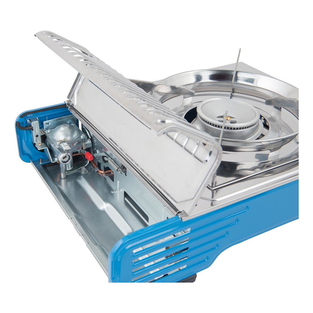 Campingaz Camp'Bistro DLX. Anzahl Herdplatten/Kochzonen: 1 Zone(n), Leistung: 2200 W, Zündungstyp: Piezo. Gewicht: 1,73 kg, Breite: 280 mm, Tiefe: 380 mm