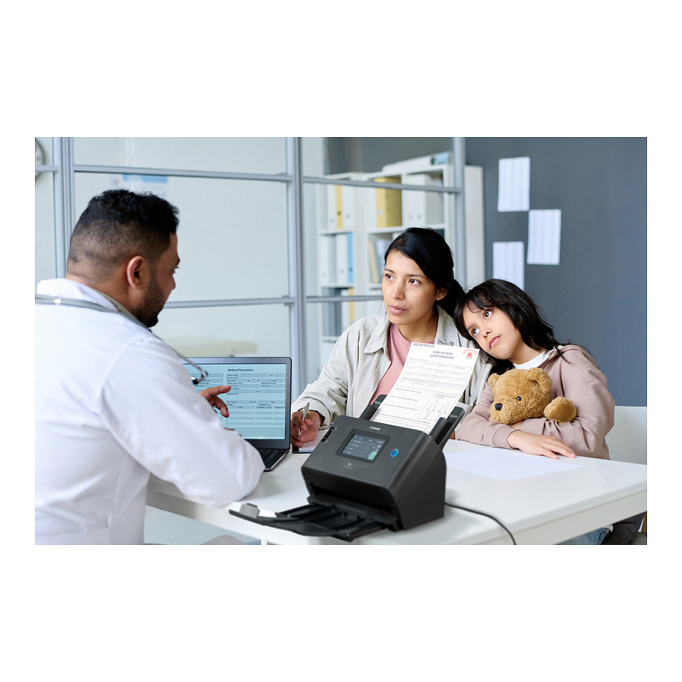 Canon DR-S350NW. Optische Scan-Auflösung: 600 x 600 DPI, ADF-Scangeschwindigkeit (s/w, A4): 50 Seiten pro Minute, Duplex ADF-Scangeschwindigkeit (s/w, A4): 100 ipm. Scanner-Typ: ADF-Scanner, Produktfarbe: Schwarz, Display: LCD. Sensor-Typ: CIS, Tägliche Einschaltdauer (max): 9000 Seiten, Scan to: FTP. Kapazität des automatischen Dokumenteneinzugs (ADF): 60 Blätter. Maximale Papiergröße der ISO A-Serie: A4, Media Dicke (min): 0,04 mm, Kartenstärke (max.): 0,3 mm