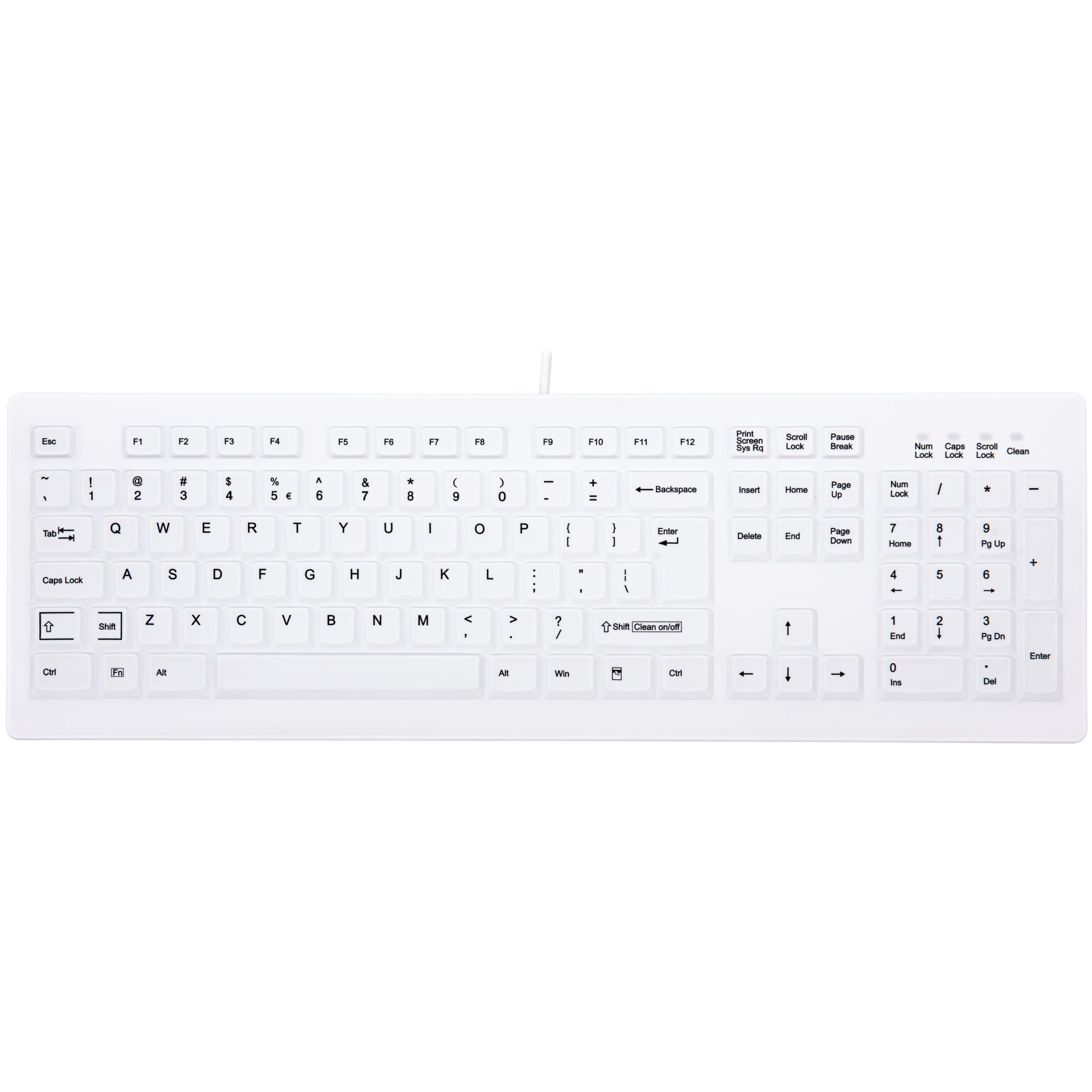 Die AK-C8100 ist eine hochwertige PC-Tastatur im vollen Layout. Die Silikonmembran schützt das Tastenfeld gegen Eindringen von Schmutz und Flüssigkeiten. Dank des leichten Tastenanschlags und der präzisen Tastenführung ist die AK-C8100 für den Einsatz in hygienekritischen Umgebung unbedingt zu empfehlen