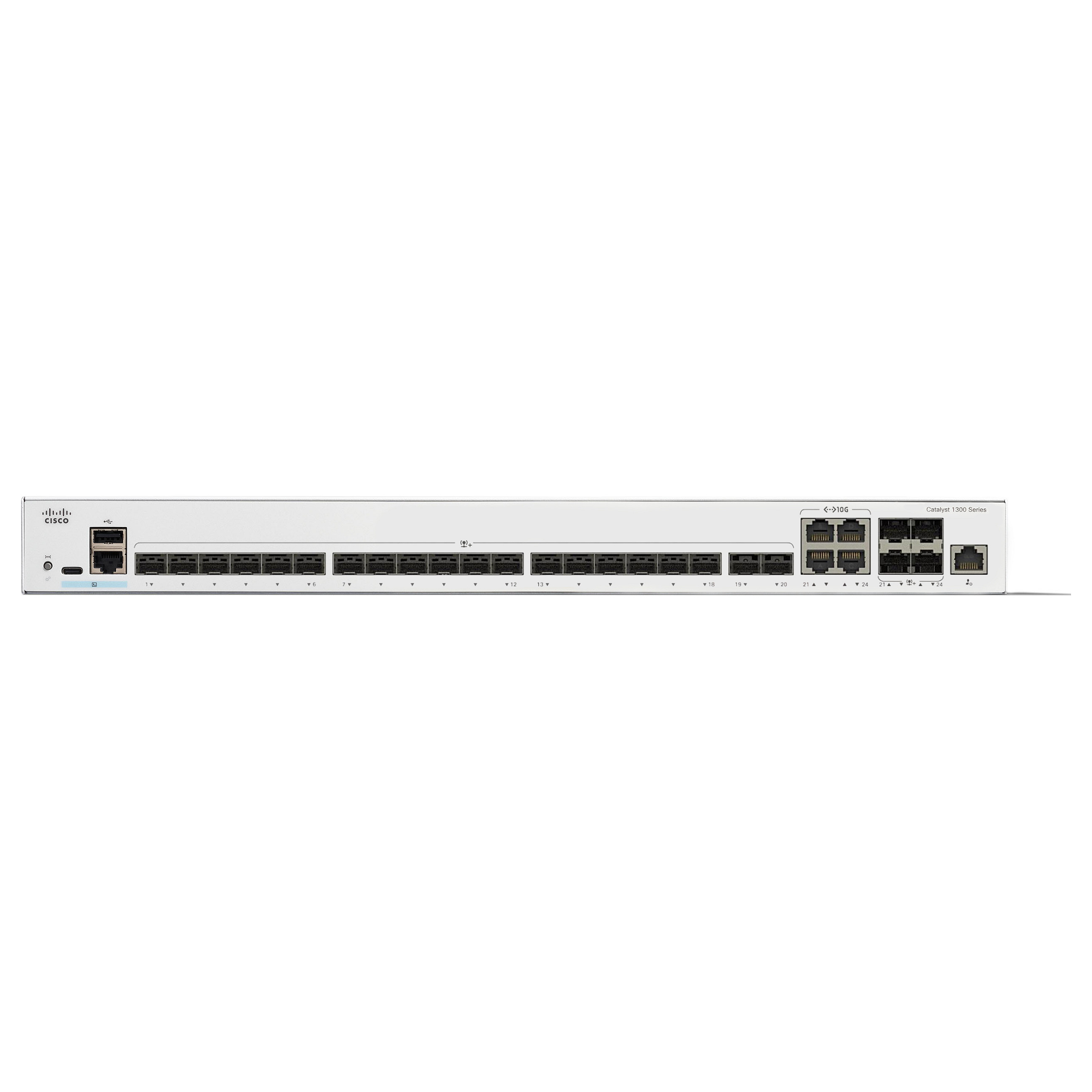 Cisco Catalyst C1300-24XS. Switch-Typ: Managed, Switch-Ebene: L2/L3. Konsolen-Port: RJ-45/USB Type-C. MAC-Adressentabelle: 16000 Eintragungen, Routing-/Switching-Kapazität: 480 Gbit/s. Netzstandard: IEEE 802.1D, IEEE 802.1Q, IEEE 802.1ab, IEEE 802.1s, IEEE 802.1w, IEEE 802.1x, IEEE 802.3, IEEE.... Rack-Einbau