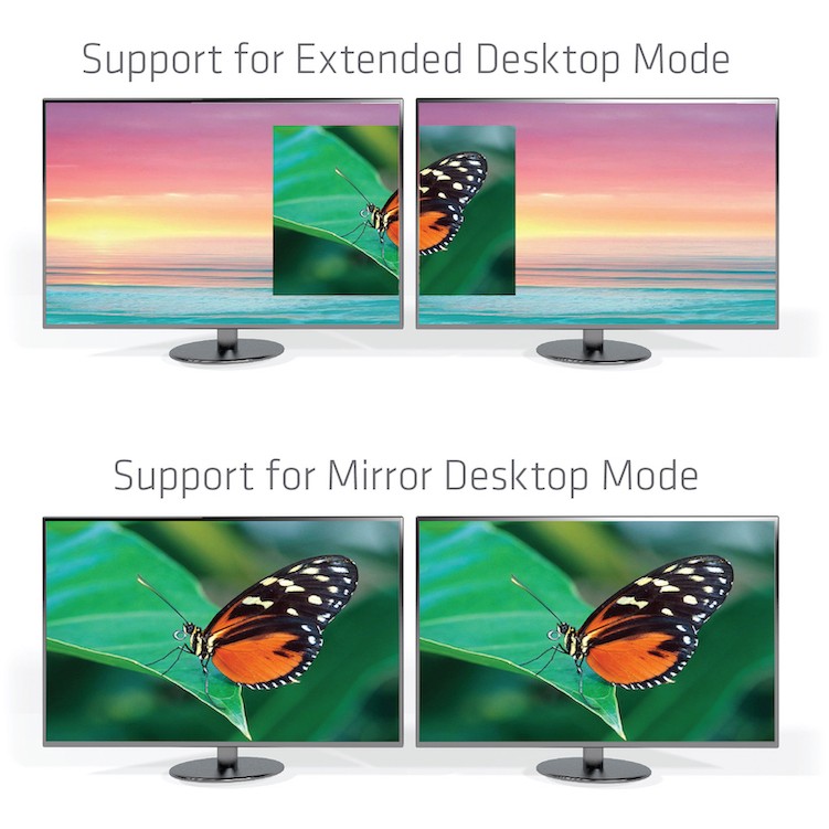 Multiplizieren Sie Ihren Bildschirmbereich mit Ihrem Tablet, Desktop-PC oder Ultrabook. Mit mehreren Monitoren wird Ihr Computer nützlicher und Sie werden effizienter und mehr erreichen. Mit 2 Displays, die 4 K Leistung liefern, können Sie viermal den Bildschirm Platz im Vergleich zu 1080p haben.