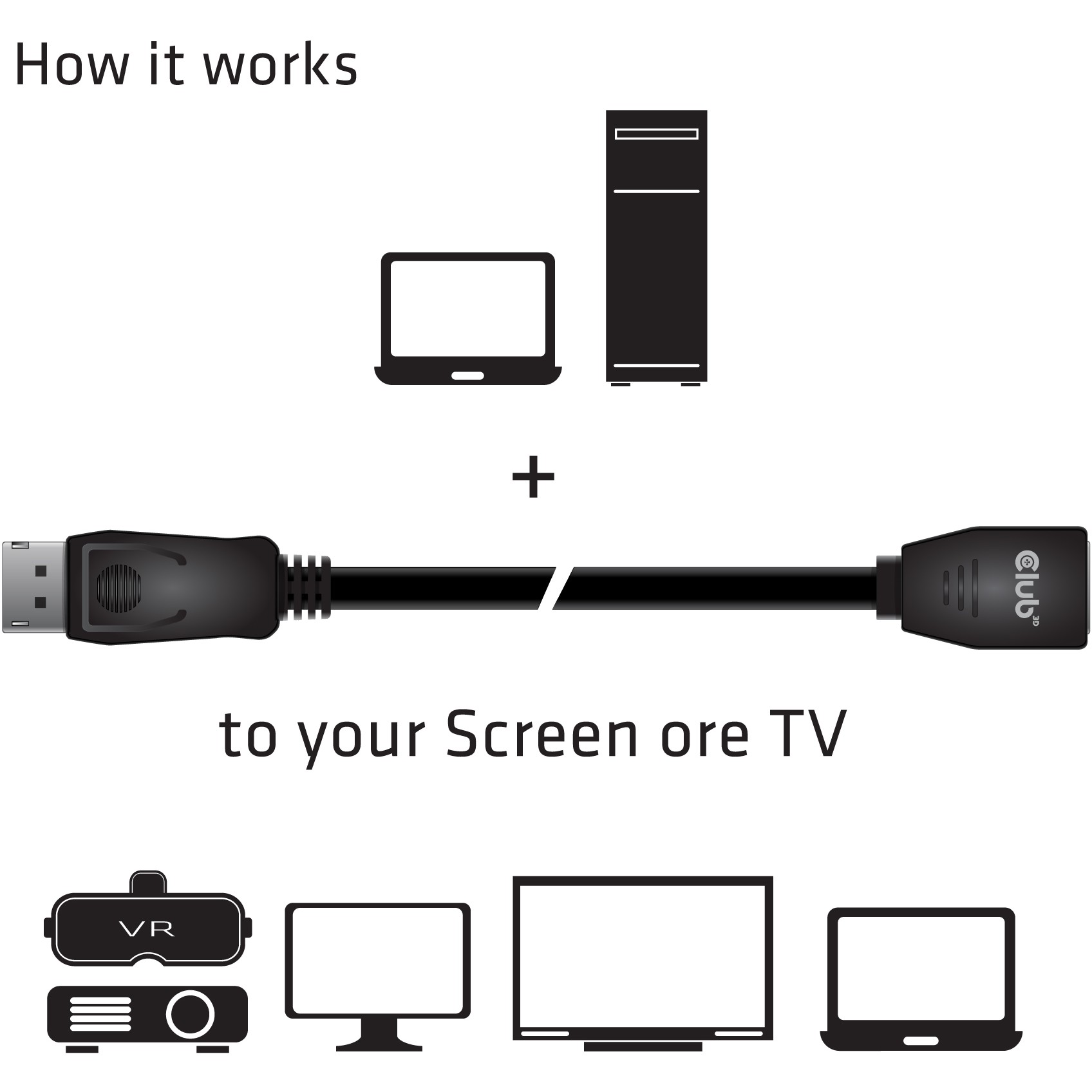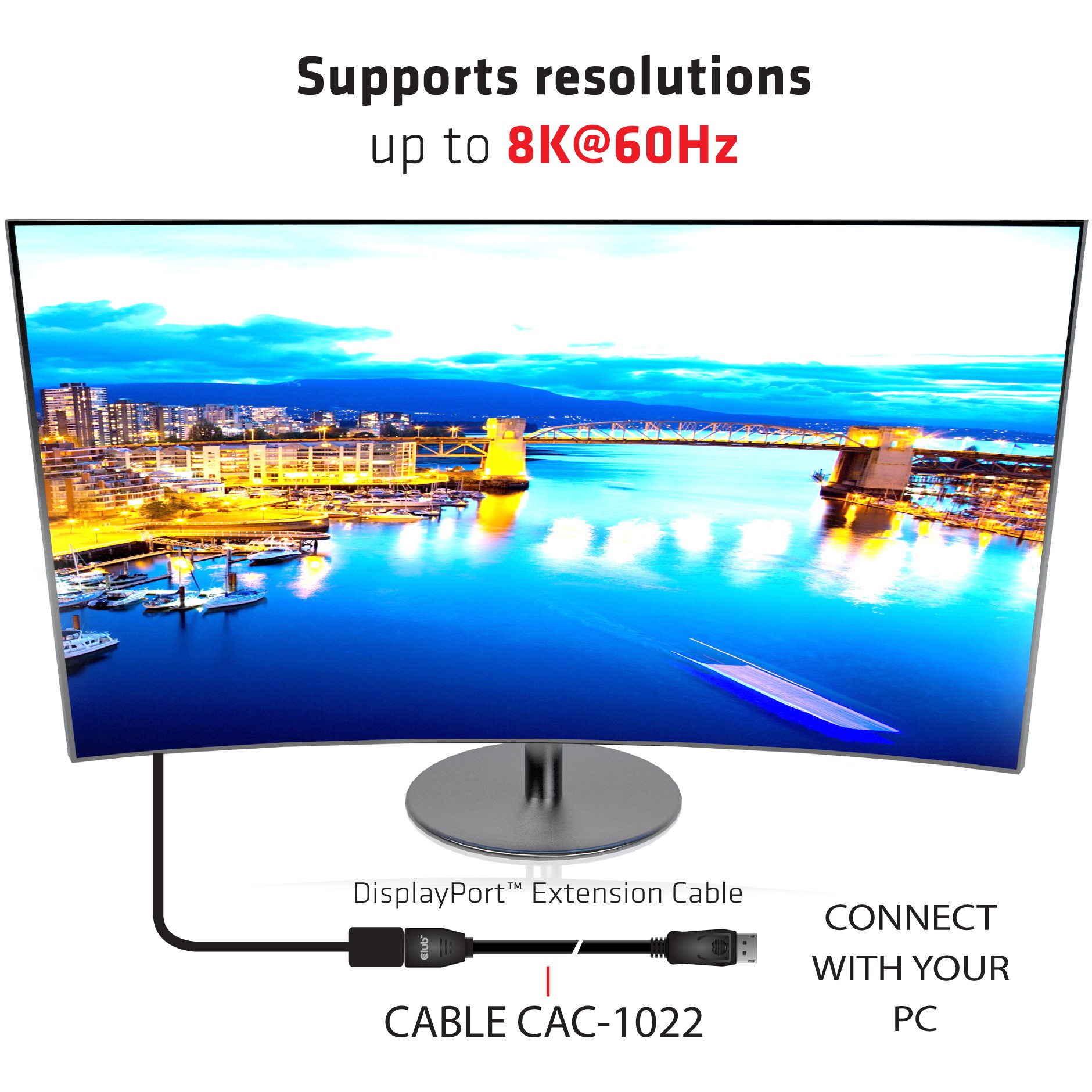 Das Club 3D DisplayPort™ 1.4 HBR3 Kabel Stecker/Buchse 2m, ermöglicht die Verlängerung Ihrer Verbindung zu Ihrem mit DisplayPort™ ausgestatteten (Gaming) PC oder Laptop, zu einem (Ultra) hochauflösenden Monitor oder anderen mit DisplayPort™ ausgestatteten Produkten. DisplayPort™ 1.4 fügt Unterstützung für Display Stream Compression 1.2 (DSC) hinzu, Forward Error Correction, und erweitert die maximale Anzahl von Inline Audio Kanälen auf 32.