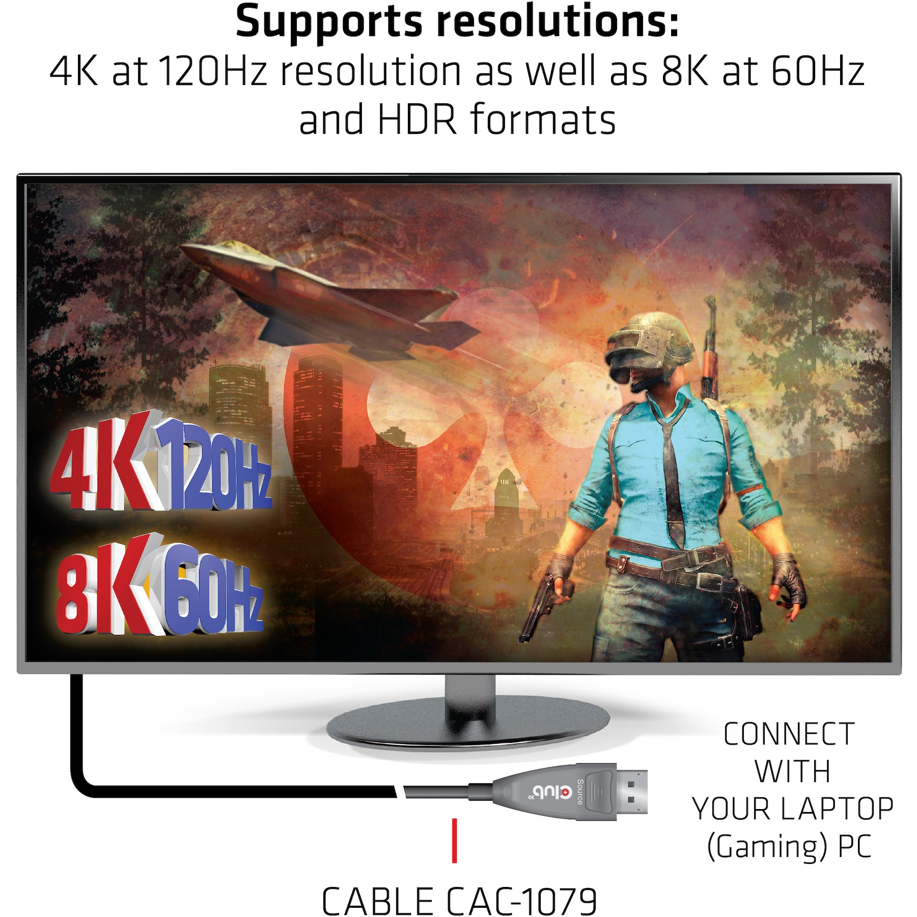 Das Club 3D CAC-1079 ist ein unidirektionales aktives optisches DisplayPort™ Kabel, das Ihnen Unterstützung für 8.1Gbps pro Kanal liefert. Es unterstützt Auflösungen bis zu 4K bei 120Hz genauso, wie 8K bei 60Hz und HDR Formate.