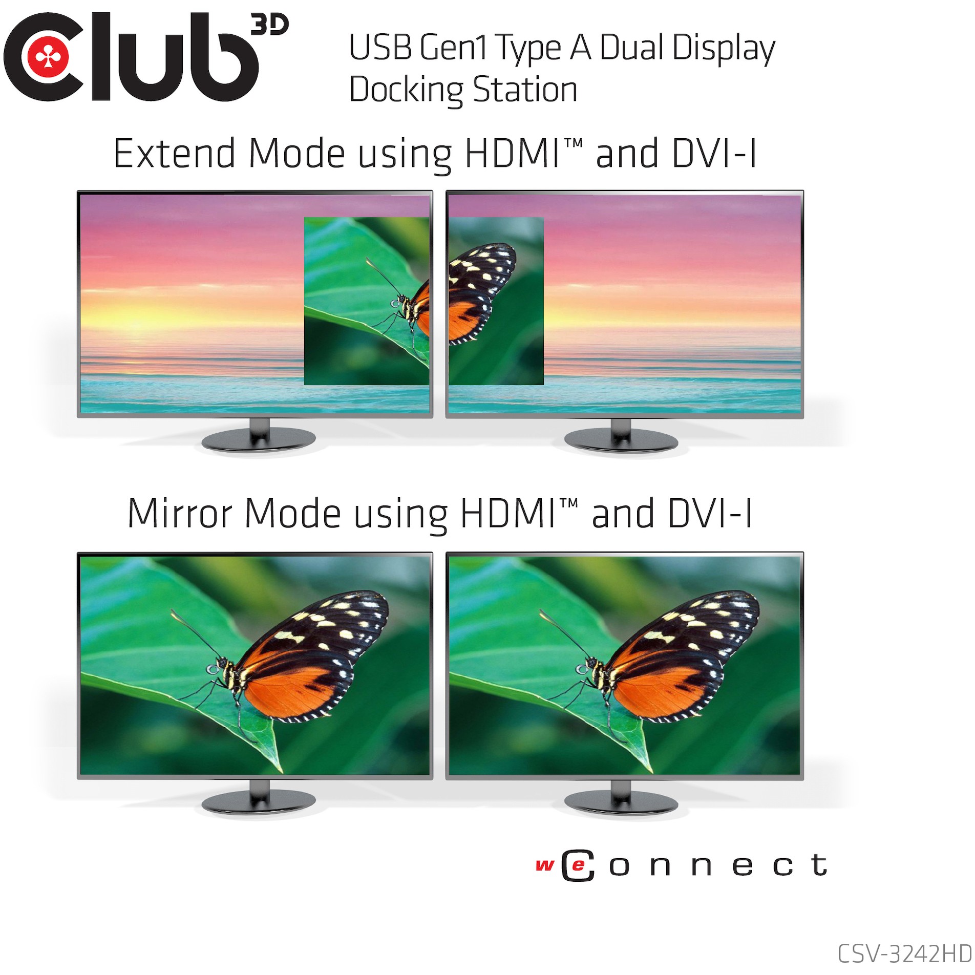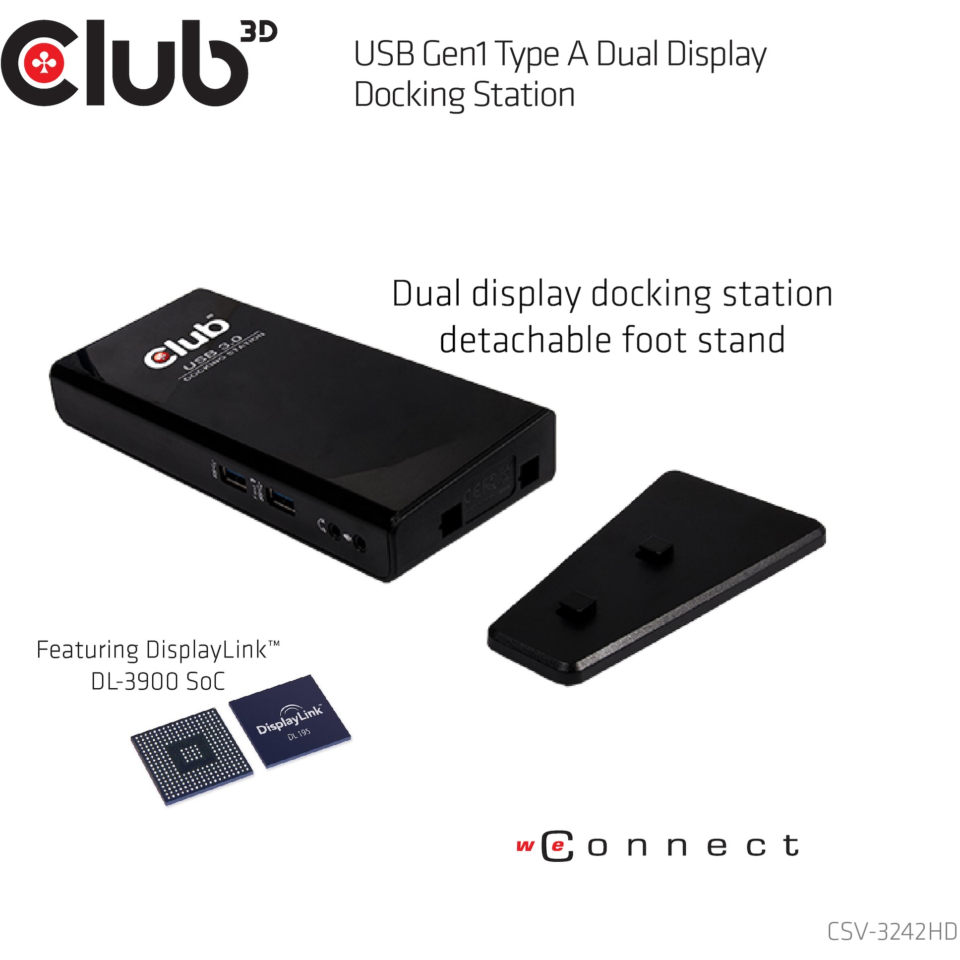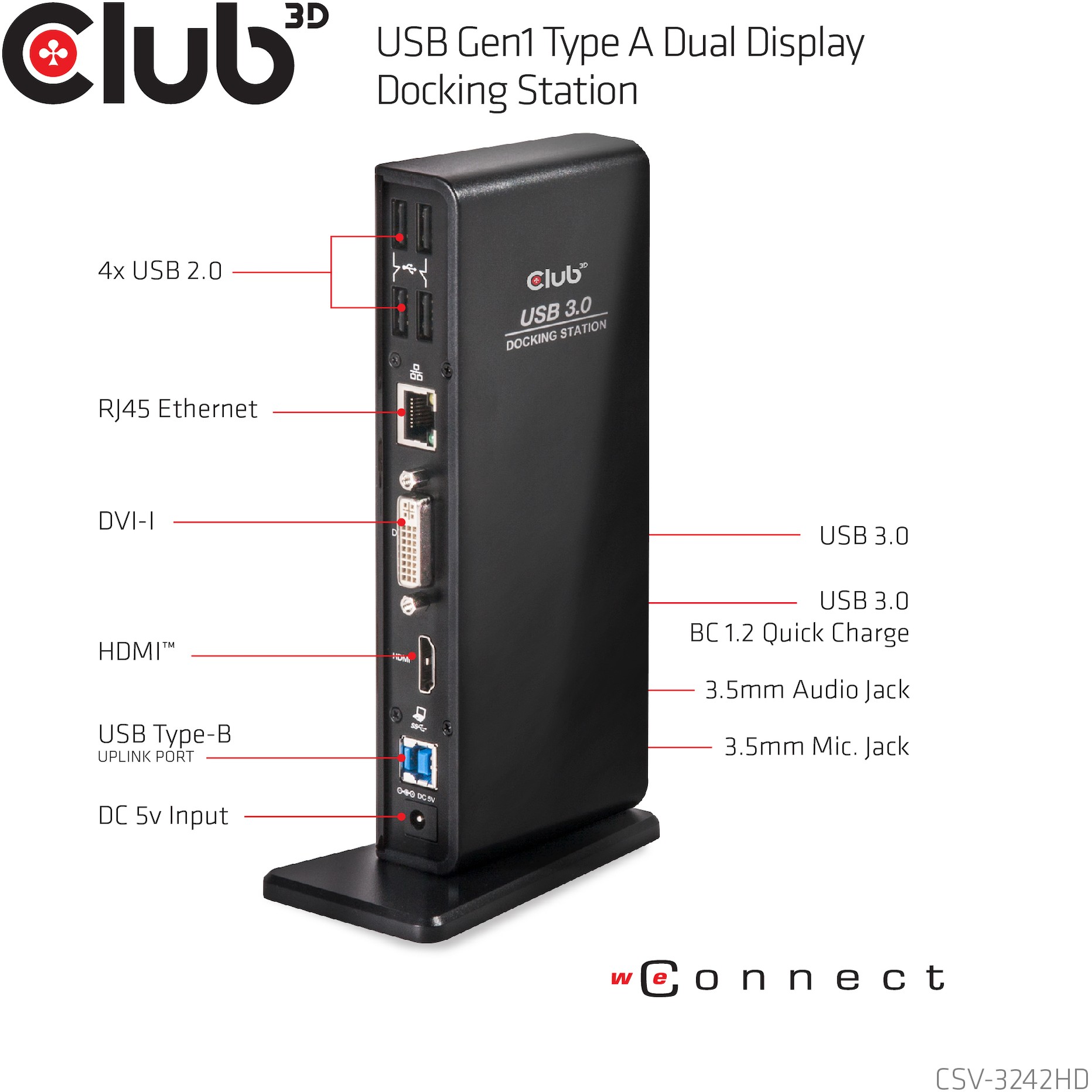 Die Club 3D USB 3.0 Dual Display Docking Station wurde entwickelt für Leute mit hohem Bedarf für zusätzliche Anschlüsse. Mit der Docking Station kannst Du die Anschlüsse deines Computers für mehr USB Peripheriegeräte, Ethernet Netzwerk, Lautsprecher und Mikrofon über nur ein USB Kabel erweitern.