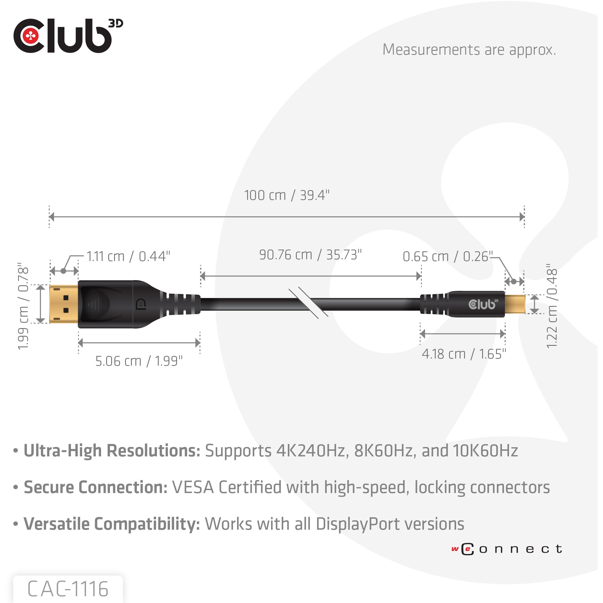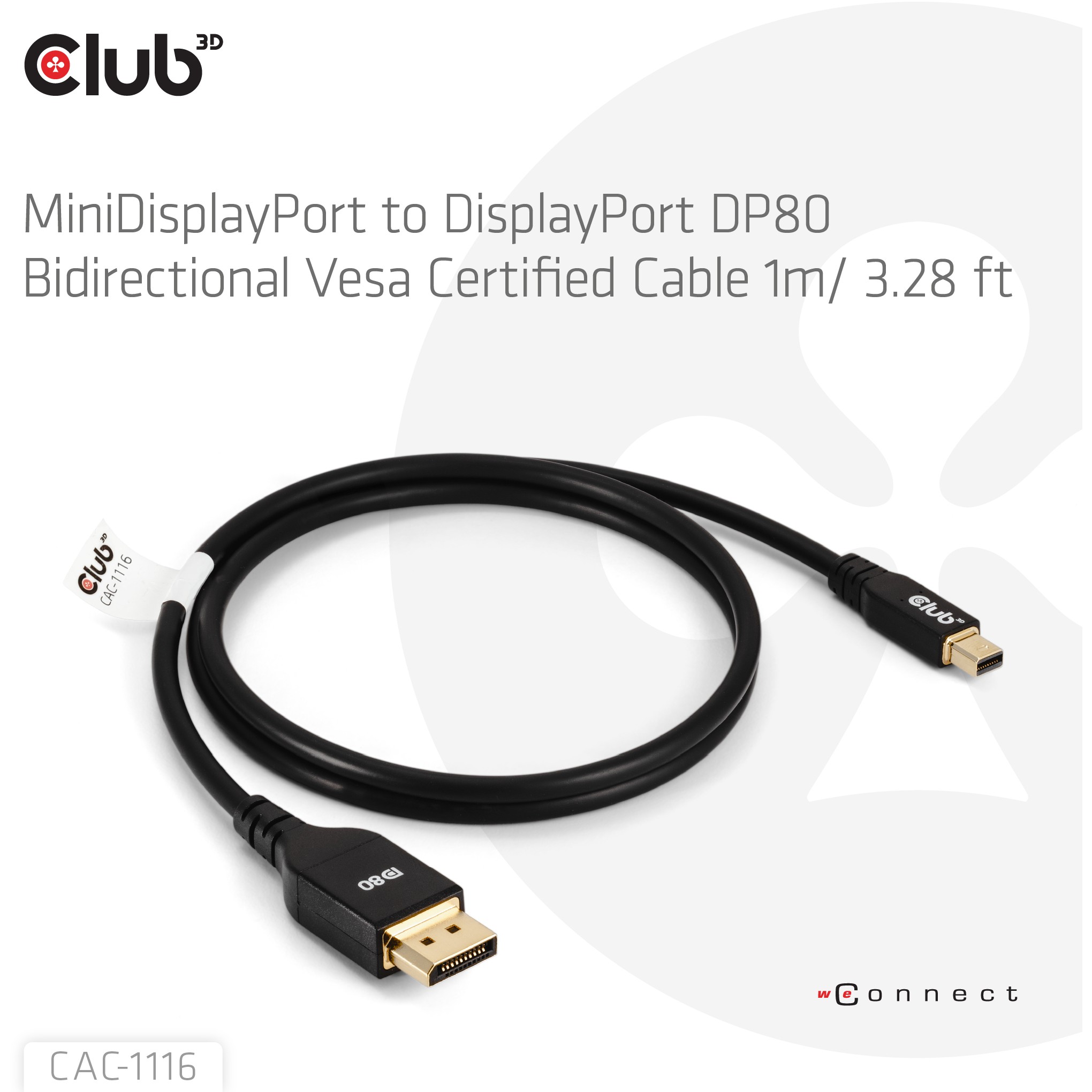 CLUB3D Mini DisplayPort™ to DisplayPort™ Bi-Directional VESA DP80 Certified Cable M/M 1m/3.28ft