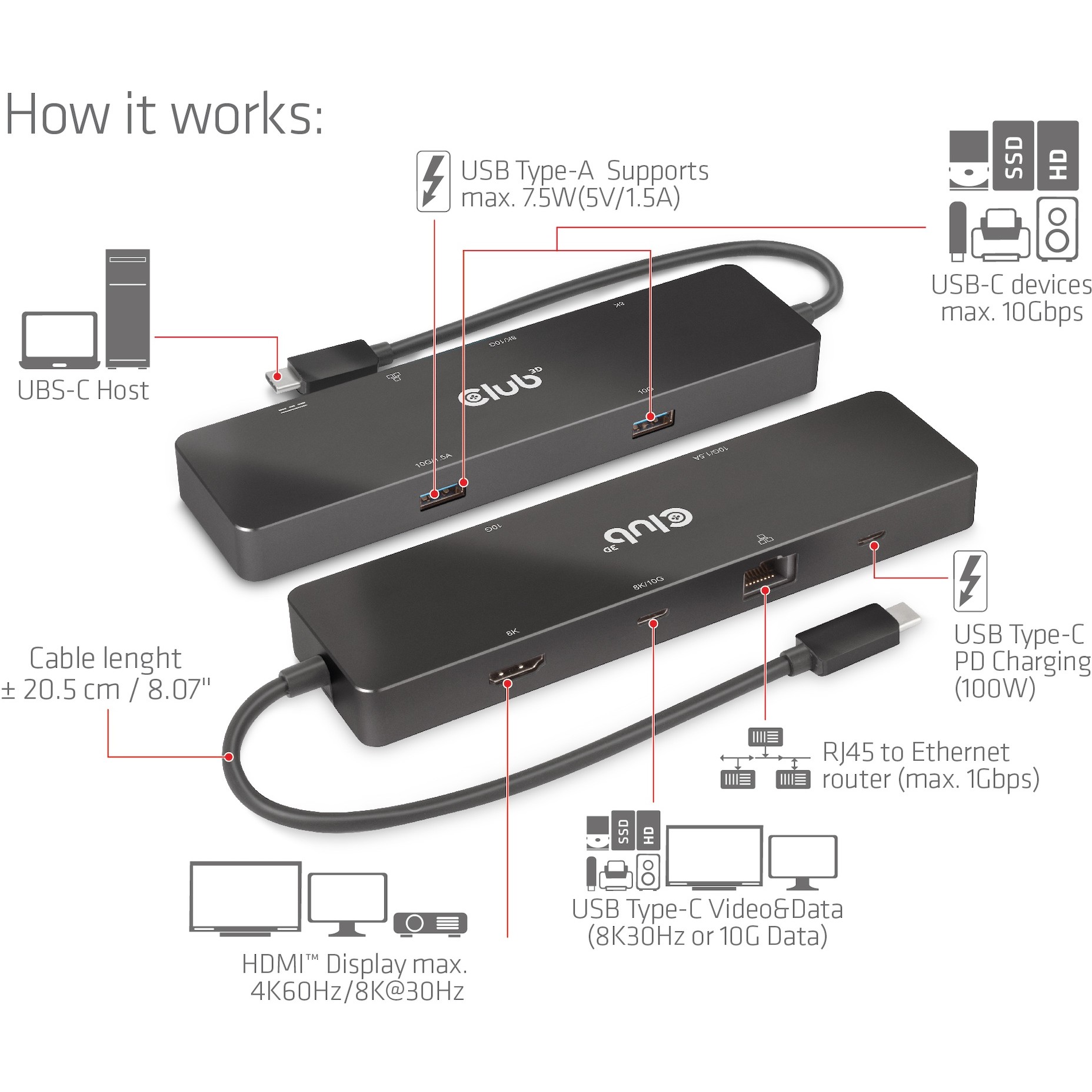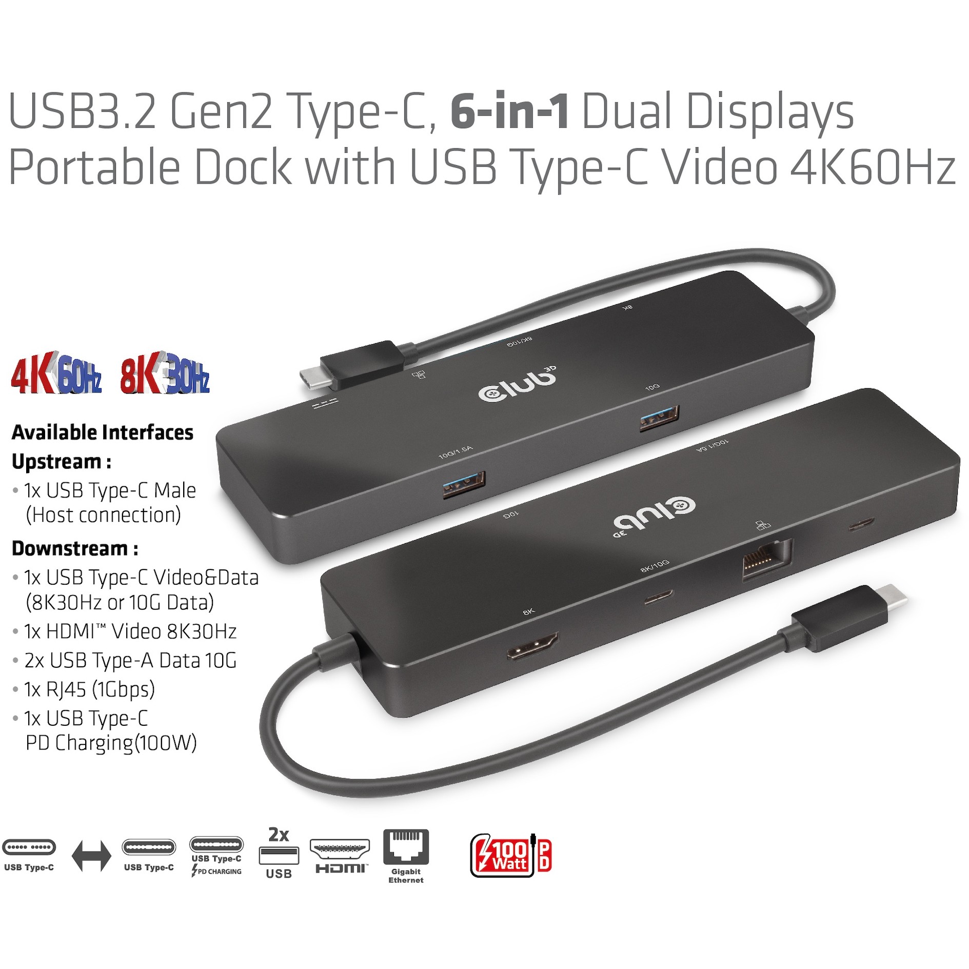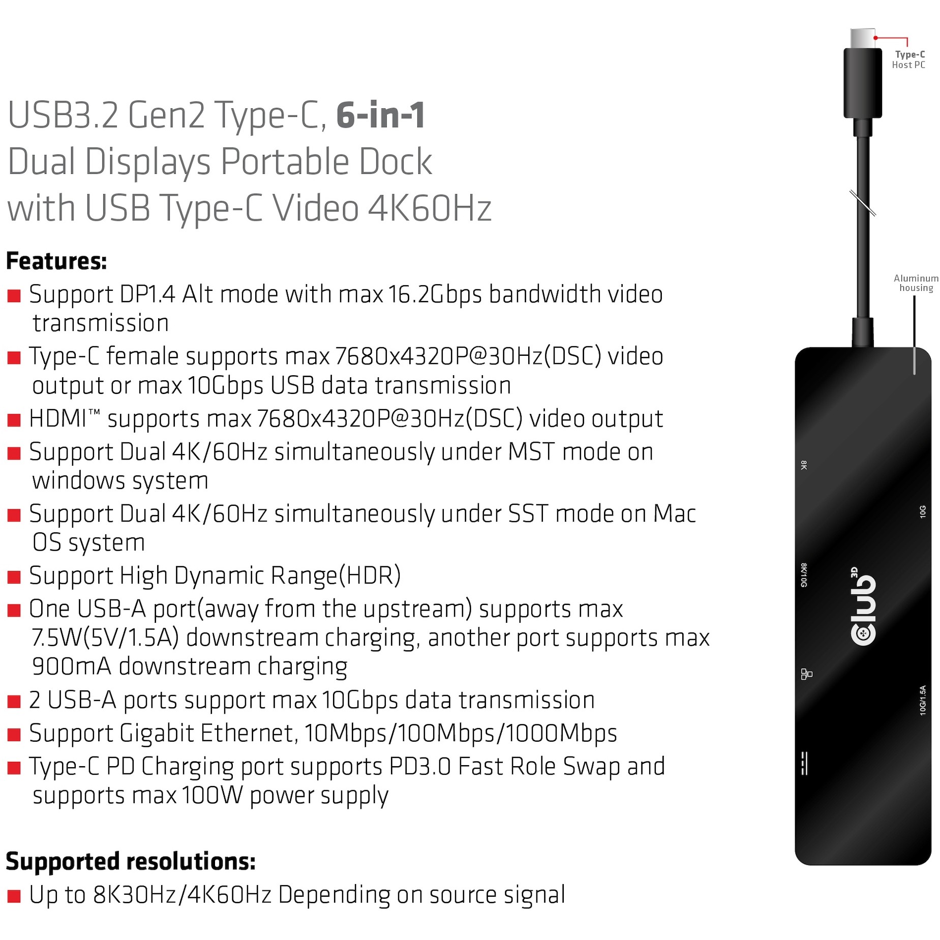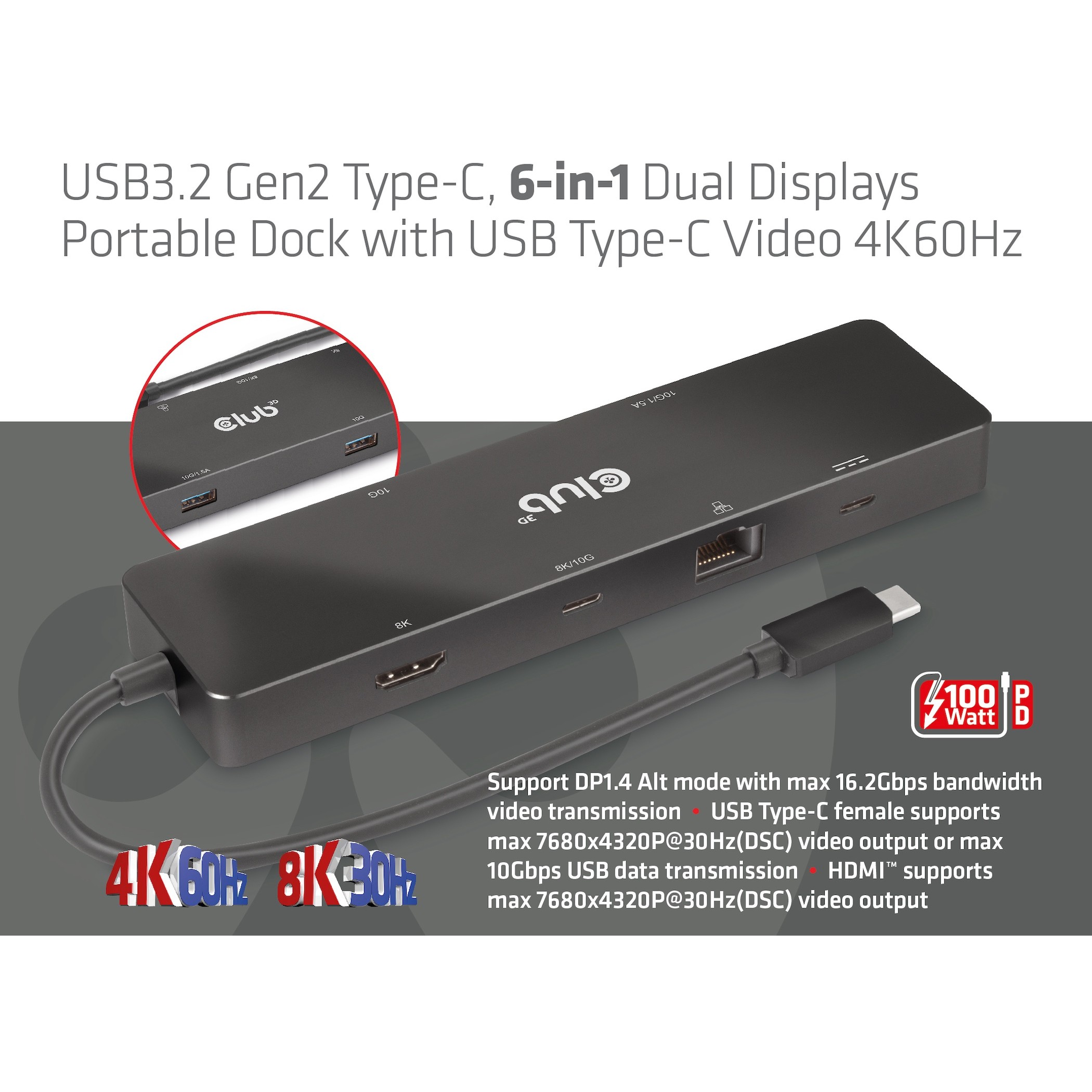 Die Club 3D CSV-1584 ist eine 6-in-1 USB3.2 Gen2 Typ-C Dock mit HDMI™ 8K30Hz/4K60Hz,