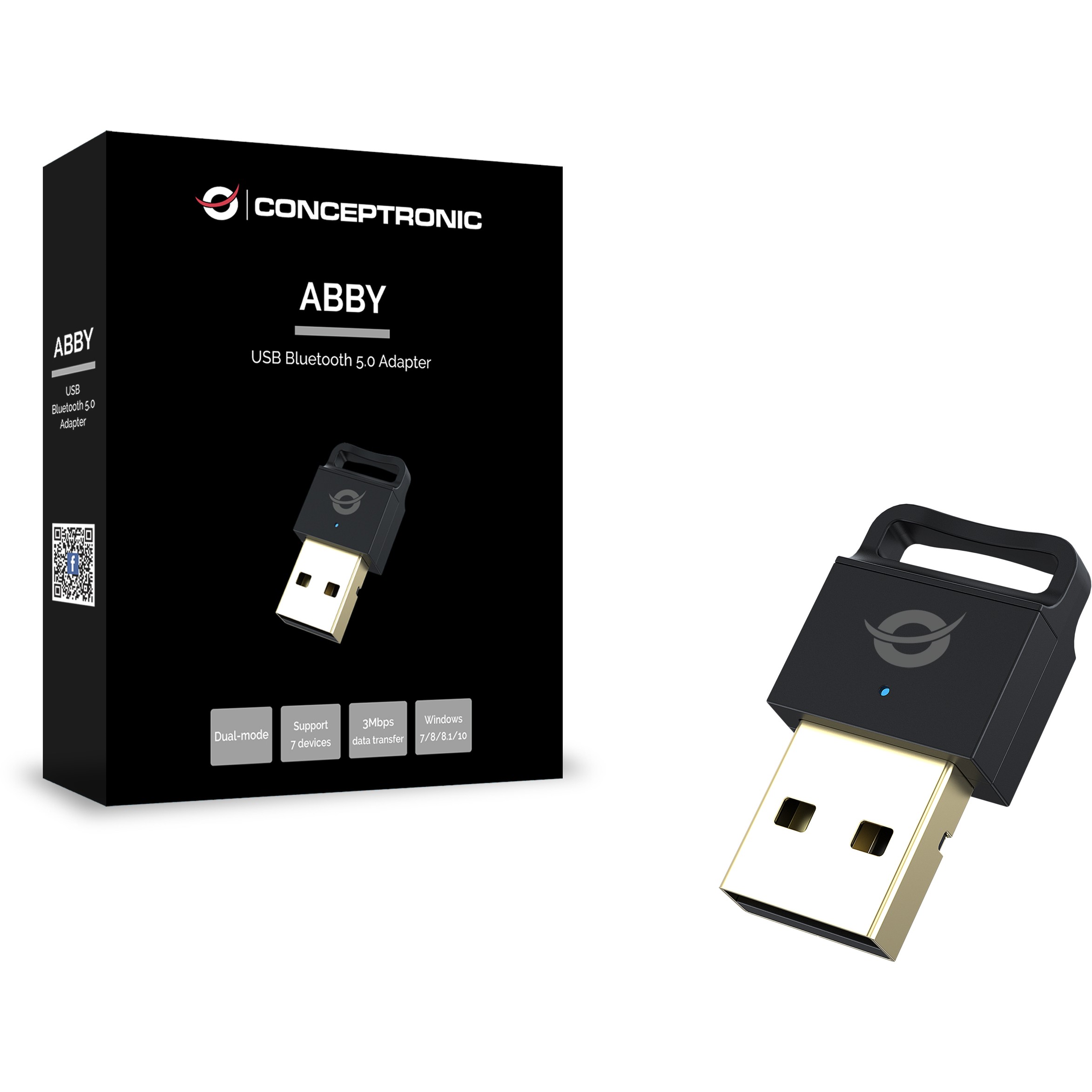 Der Bluetooth-V5.0-Nano-USB-Adapter von Conceptronic kann eine kabellose Verbindung zu anderen Bluetooth-Geräten wie PDAs (Handgerät), Mobiltelefonen, GPS-Empfängern, Mäusen und anderen Computern herstellen. Dank des geringen Stromverbrauchs und ultrakompakten Formfaktors kann er einfach in Ihrem Notebook eingesteckt bleiben. Ideal für mobile Nutzer!