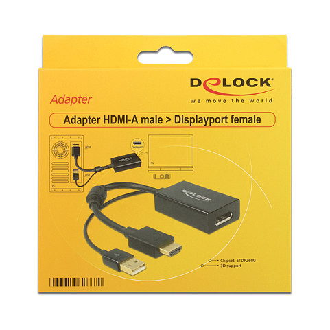 Mit diesem Adapter von Delock können Sie z. B. einen Displayport Monitor über eine freie HDMI Schnittstelle Ihres Systems anschließen.