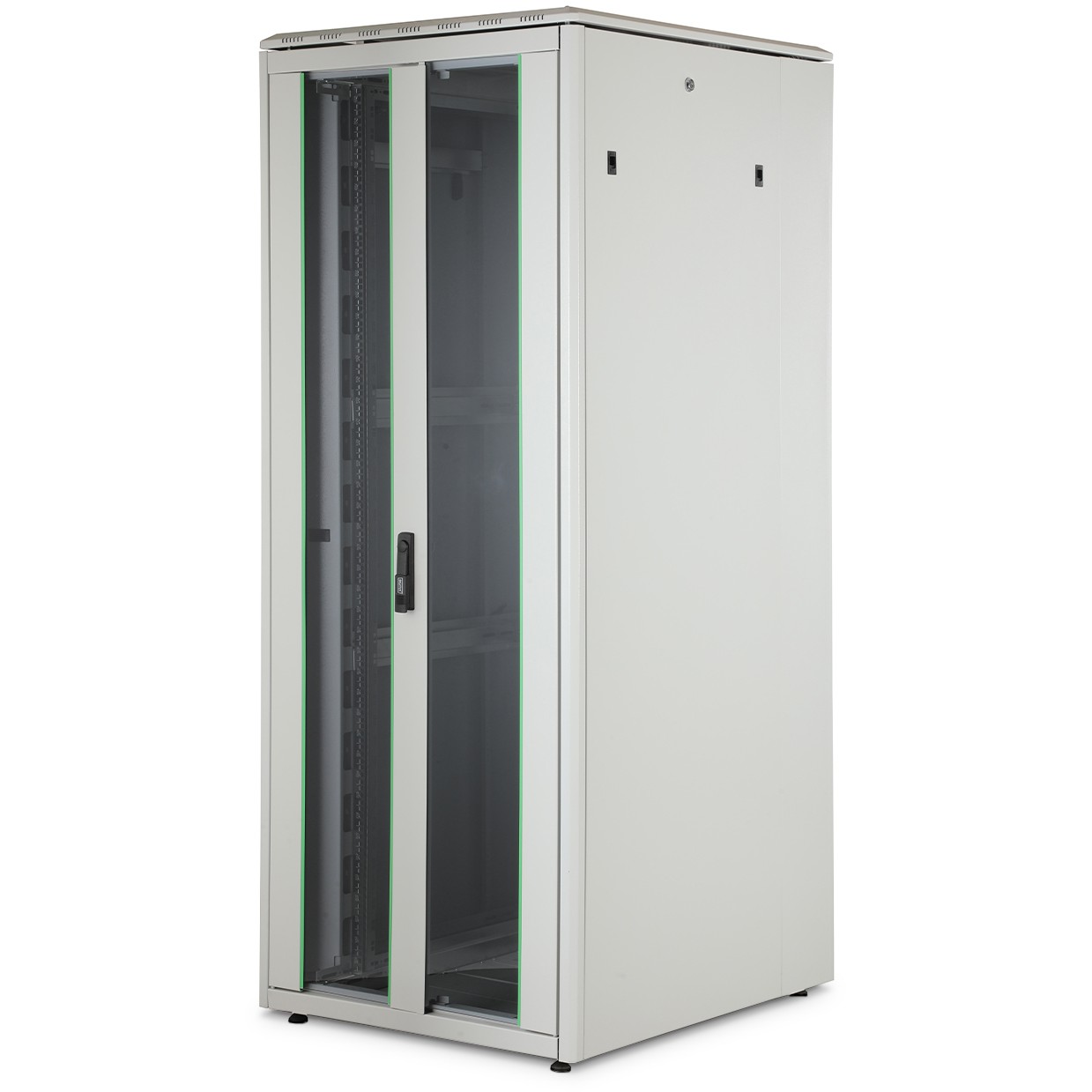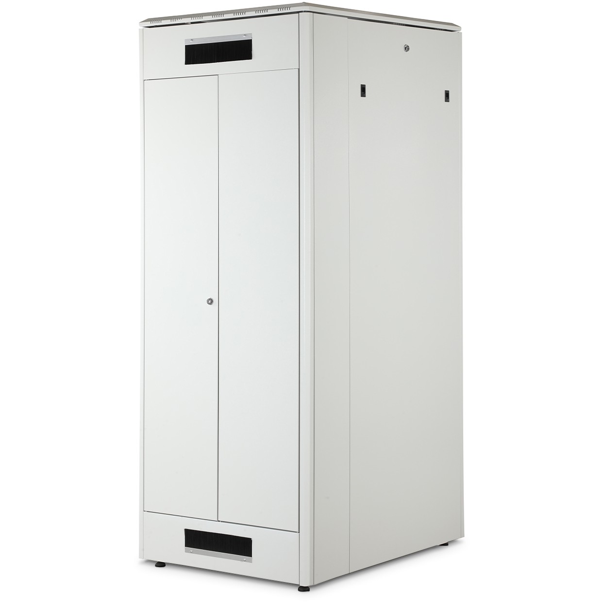 - Flexible Möglichkeiten zur Kabelführung durch großzügige Kabeleinlässe mit Bürsten im Dach, Boden und der Rückseite