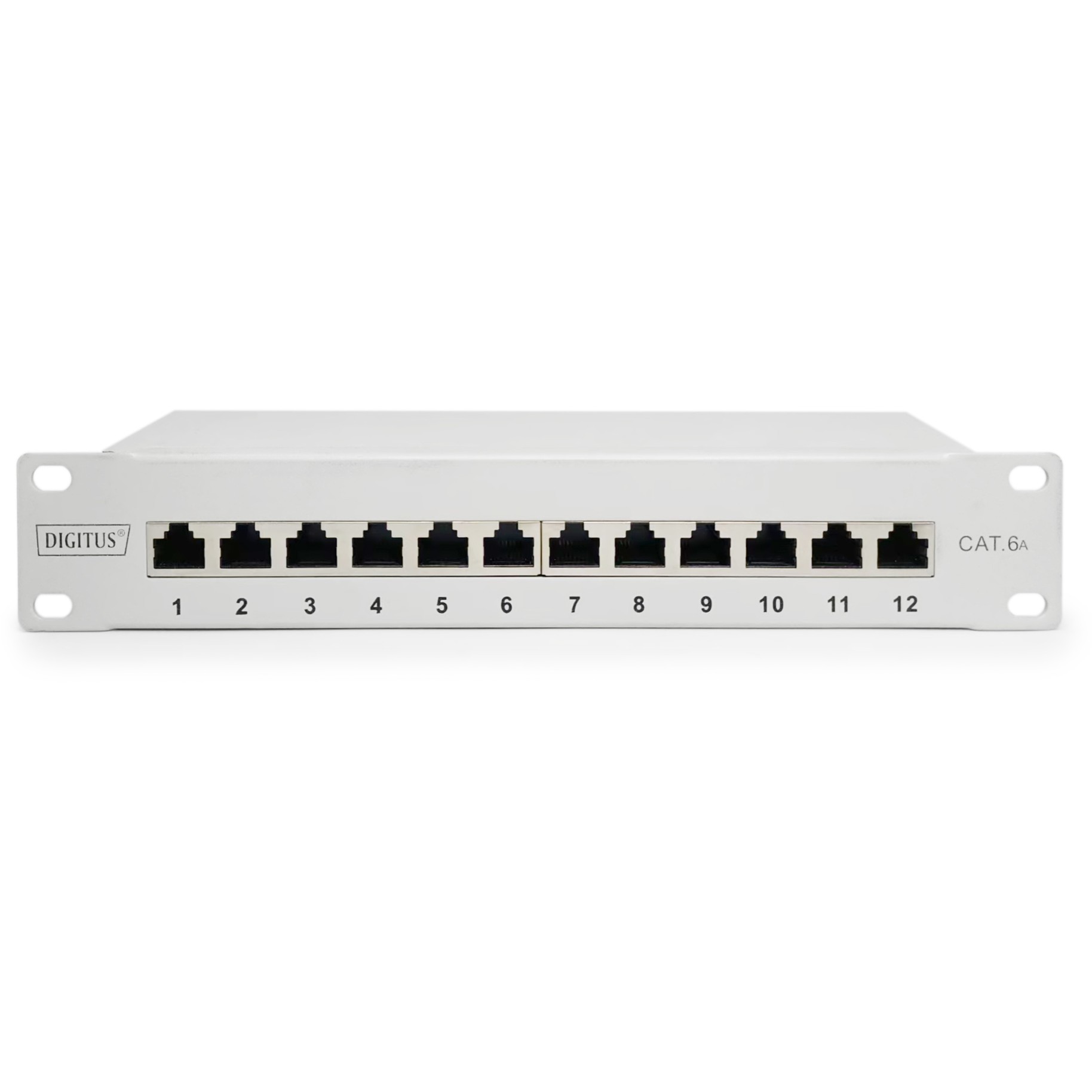 Das DIGITUS® CAT 6A Patch Panel ist erhältlich in der 12-Port Version und stellt mit dem 1,5 mm galvanisiertem kaltgewalzten Stahl ein robustes Patch Panel für die 10" Schrankmontage dar. Es entspricht dem (IEEE 802.3at) PoE+ Standard. Das Patch Panel ist elektromagnetisch abgeschirmt und bietet somit verlust- und störungsfreie Weiterleitung der Daten Ihrer Netzwerkinfrastruktur. Die 360° Schirmung an den Kontaktierungsstellen stellt sicher, das auch jeder einzelne Konsolidierungspunkt sauber abgeschirmt wird.