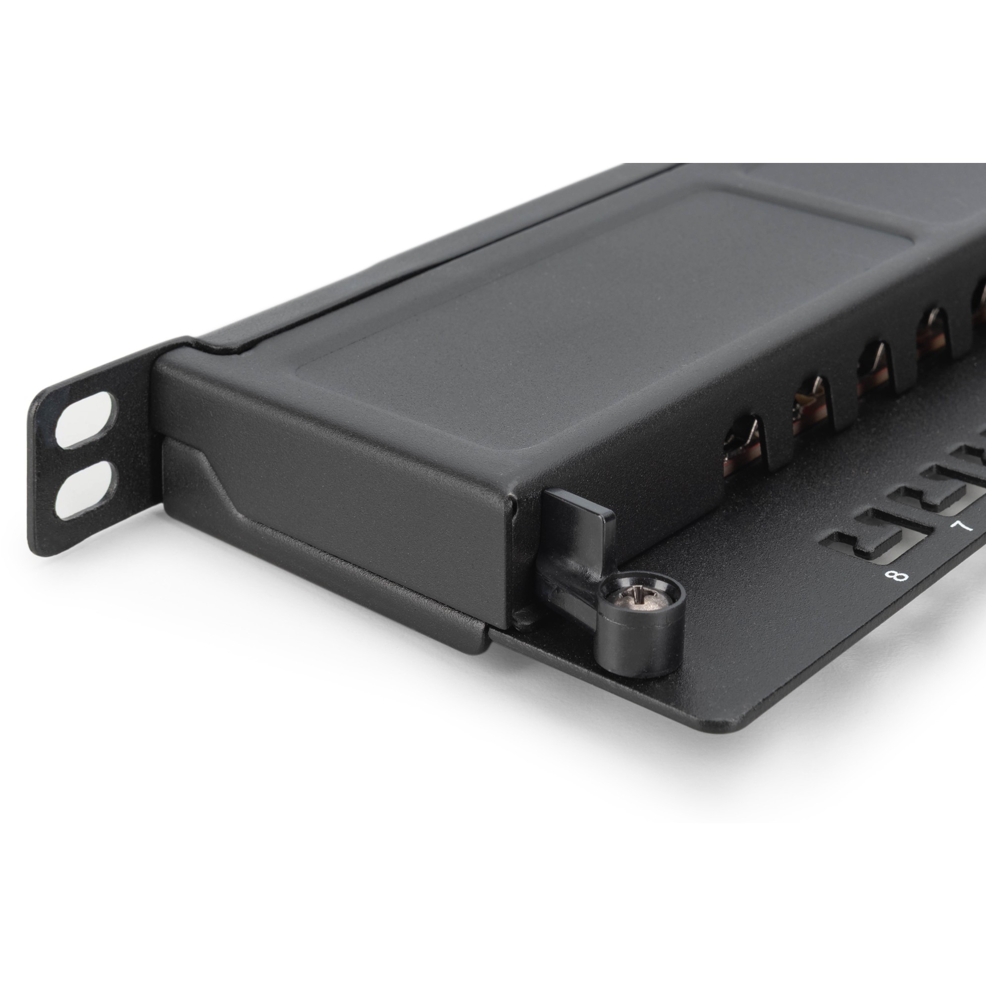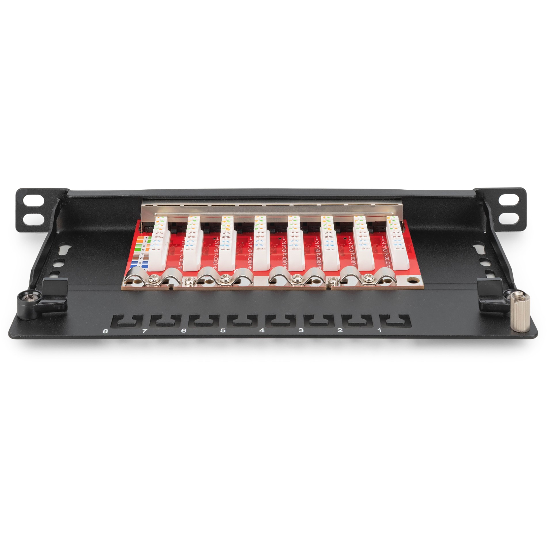 Das DIGITUS® 8-Port Patch Panel bietet mit nur 0,5 HE eine sehr hohe Packdichte. Das bedeutet, dass sich auf 1 HE bis zu 16 Ports mit zwei 0,5 HE Panels realisieren lassen. Das Patch Panel ist geschirmt. Die 360° Schirmkontaktierung der Kabel sorgt für beste Leistungseigenschaften. Mit den integrierten Kabelschellen lassen sich die Installationskabel sicher fixieren. Der Schnellverschluss am Gehäuse sorgt für leichten und werkzeuglosen Zugriff auf die LSA-Schneidklemmen. Es entspricht dem 802.3at PoE+ und dem 802.3af PoE Standard.