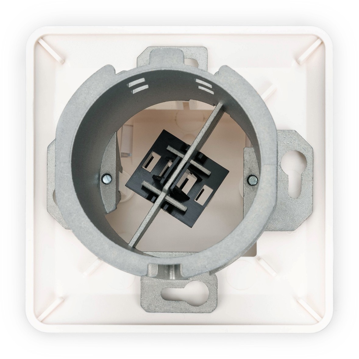 Kompakter Glasfaser-Anschlusspunkt, speziell entwickelt für FTTH-Installationen, mit einem dezenten Unterputz-Design für eine nahtlose Integration in Wohn- oder Geschäftsgebäude. Ideal zur Bereitstellung von High-Speed-Glasfaseranschlüssen.