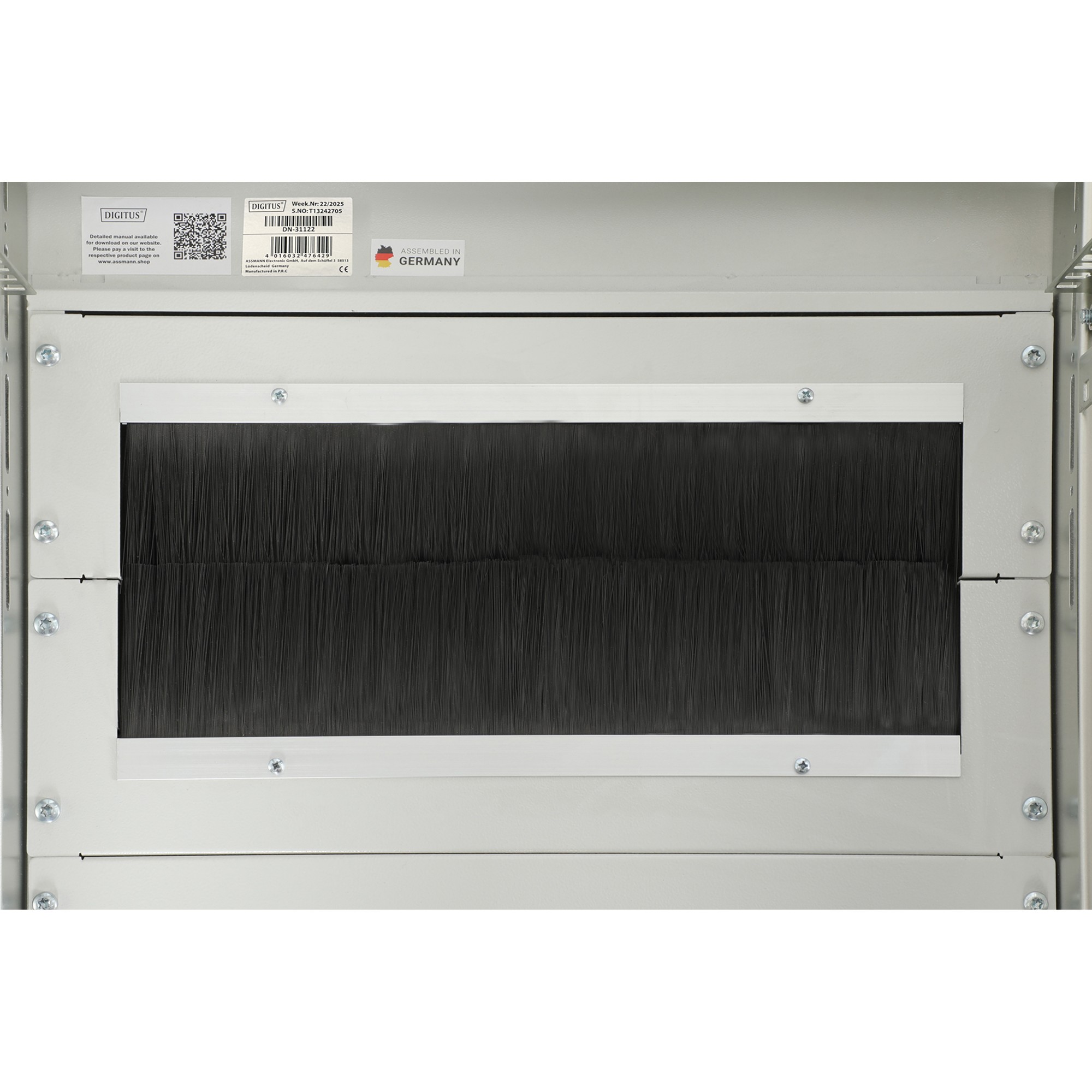 - Vertikale Kabelkanäle mit Kabelführungshilfen und Blende verbaut in der Frontseite