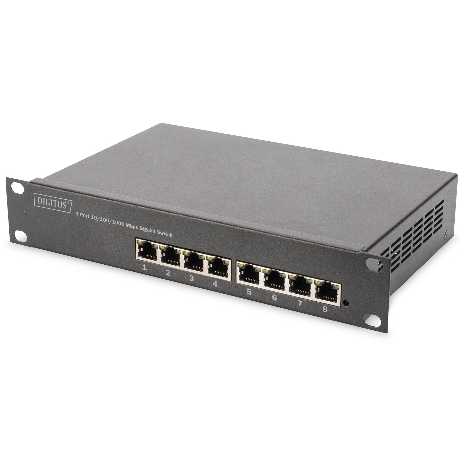 Der 8-Port Gigabit PoE-Switch ist für Netzwerke von kleineren bis mittleren Unternehmen konzipiert. Mit speziellen Funktionen wie Port-Control, Port-Mirroring, VLAN-Funktionen und Multicast-Unterstützung ist der Switch optimal zugeschnitten auf die Bedürfnisse von Konvergenz-Anwendungen mittlerer Netzwerke. Basiert auf der ASIC-Integrationstechnologie werden nicht blockierende IP-Switching Lösungen mit Gigabit-Geschwindigkeit unterstützt. Der Switch kann sowohl als Desktop-Switch als auch für den Einbau in 10 Zoll Gehäusen eingesetzt werden. Integriert sind 8 Gigabit-Ports mit PoE+ Unterstützung und einer Gesamtleistung von insgesamt 80 Watt Leistung, mit der Sie Geräte wie Wireless Access Points, IP-Kameras oder VoIP-Telefone betreiben können. Der Switch kann über verschiedene Schnittstellen maßgeschneidert konfiguriert werden. Die Bauhöhe beträgt 1HE.
