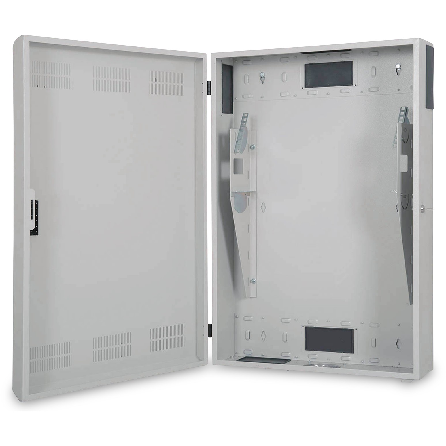 Das 483 mm (19“)-Wandgehäuse der Slim Serie erlaubt eine horizontale oder vertikale Montage von 3HE mit zwei unabhängigen Montagebereichen für Patch Panels, Switche, Router oder andere 483 mm (19“)-Aktivkomponenten.