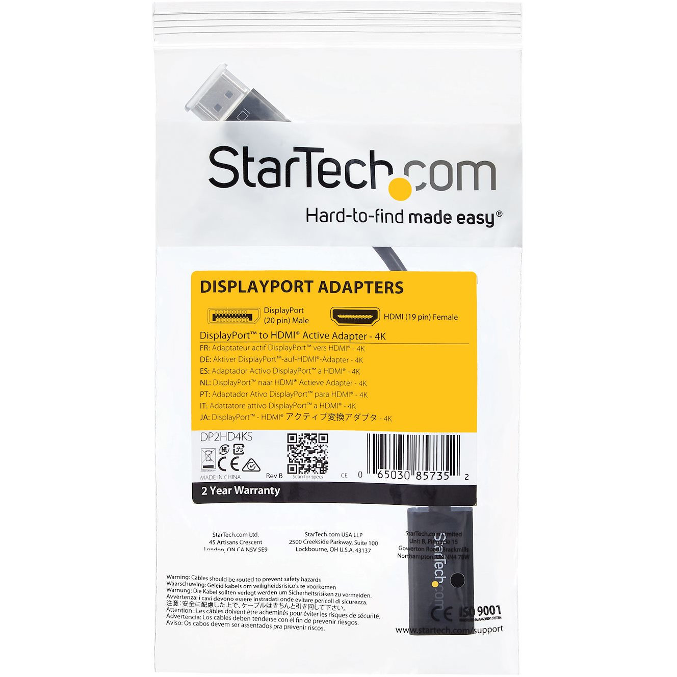 Mit dem DisplayPort-auf-HDMI-Adapter DP2HD4KS können Sie einen DisplayPort-fähigen Desktopcomputer oder Laptop, z. B. das HP EliteBook 8570p/8470p, an ein HDMI-Display anschließen. Dieser Adapter ist mit DisplayPort 1.2 und HDMI 4K bei 30 Hz kompatibel und unterstützt daher Videoauflösungen von bis zu Ultra HD (4K) ebenso wie das zugehörige digitale Audio von bis zu 7.1 Channel Surround Sound.