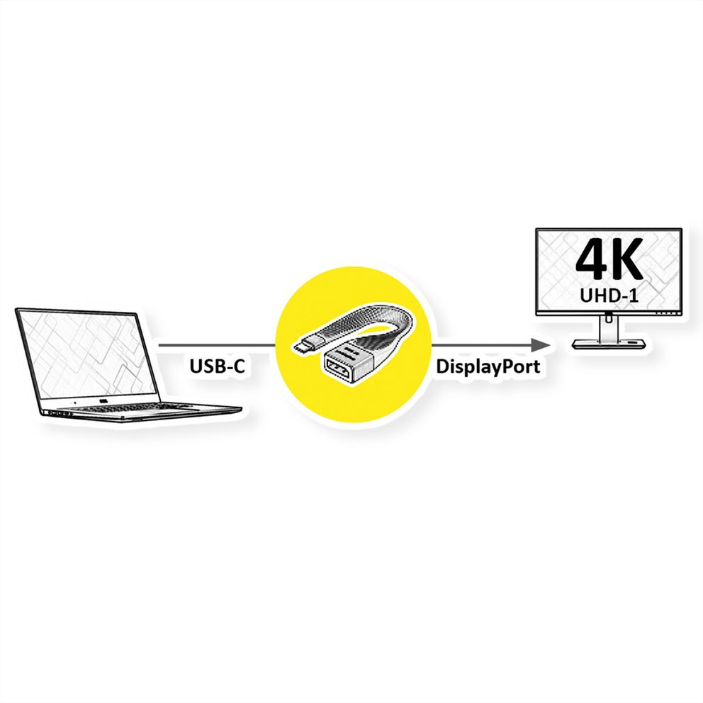 ROLINE 12033240. Kabellänge: 0,13 m, Anschluss 1: USB Typ-C, Anschluss 2: DisplayPort. Gewicht: 16,2 g. Verpackungsbreite: 100 mm, Verpackungstiefe: 100 mm, Verpackungshöhe: 20 mm