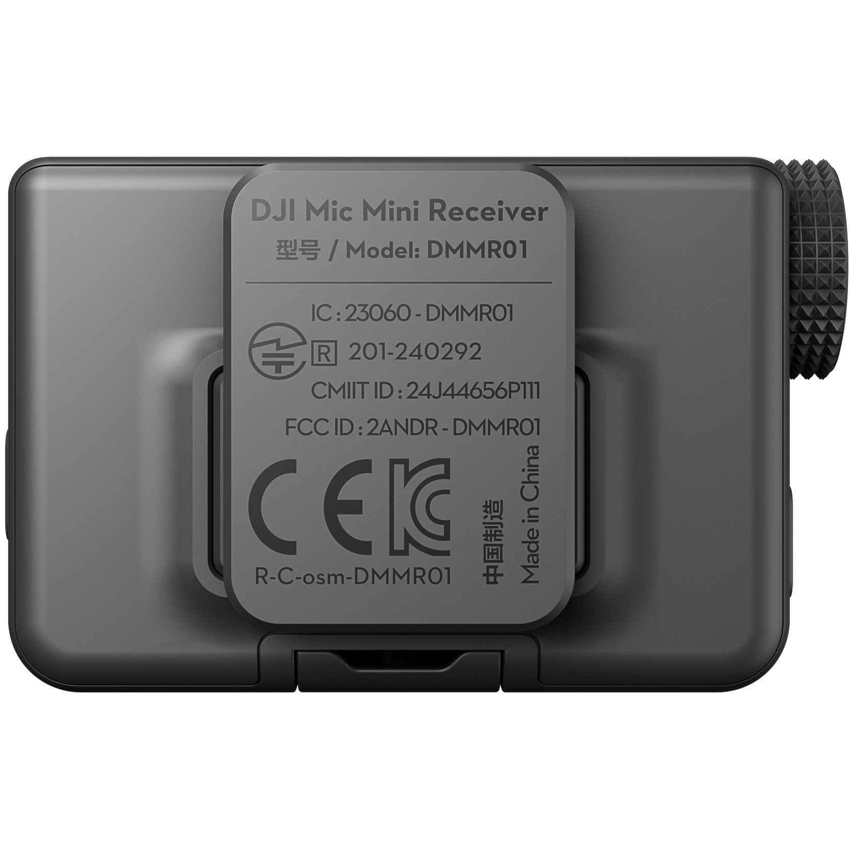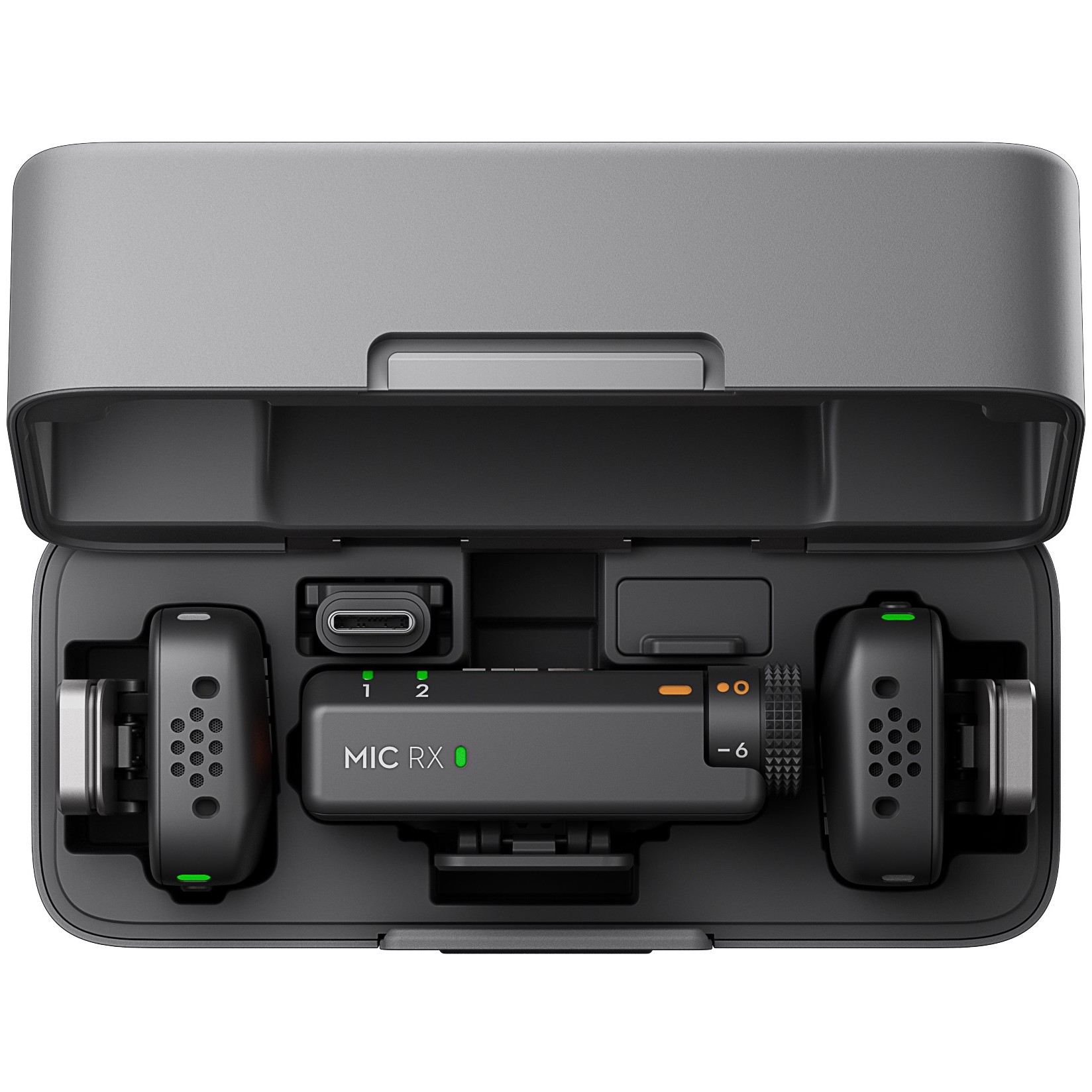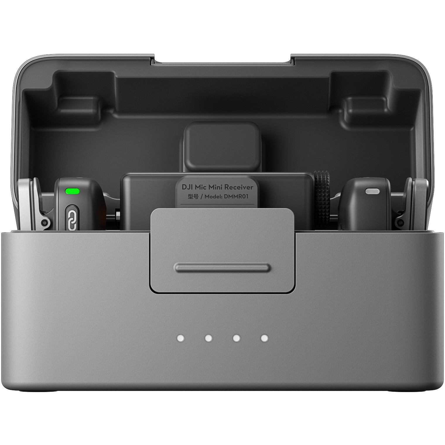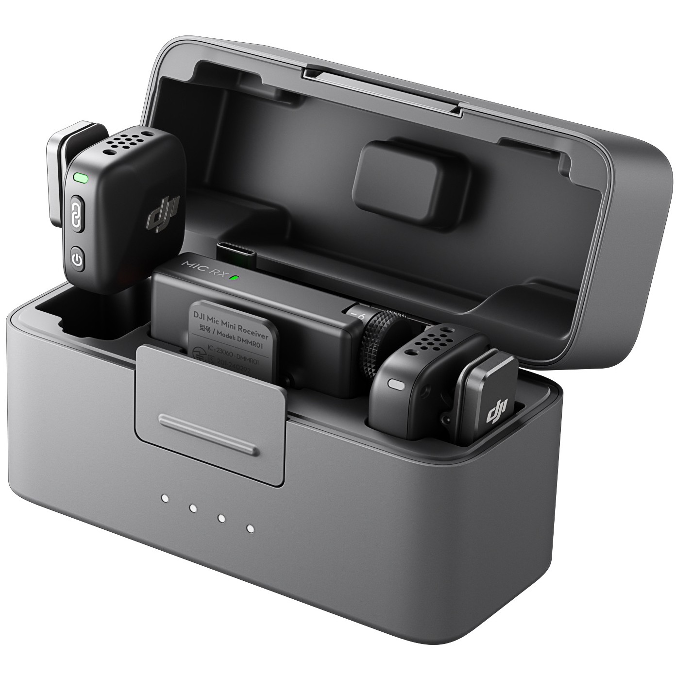 DJI Mic mini. Ausrichtung des integrierten Mikrofons: Omnidirektional, Maximaler Schalldruckpegel (1kHz): 120 dB, Äquivalenter Schallpegel: 24 dB. Receiver Typus: Kamera-Montageaufnehmer. Transmittertyp: Taschensender. Bluetooth-Frequenzband: 2,4 - 2,4835 GHz, Maximaler Arbeitsabstand: 400 m, Audioausgang: 3.5 mm. Akku-/Batteriebetriebsdauer: 10 h, Akku-/Batterietechnologie: Lithium-Ion (Li-Ion), Akku-/Batterietyp: Integrierte Batterie