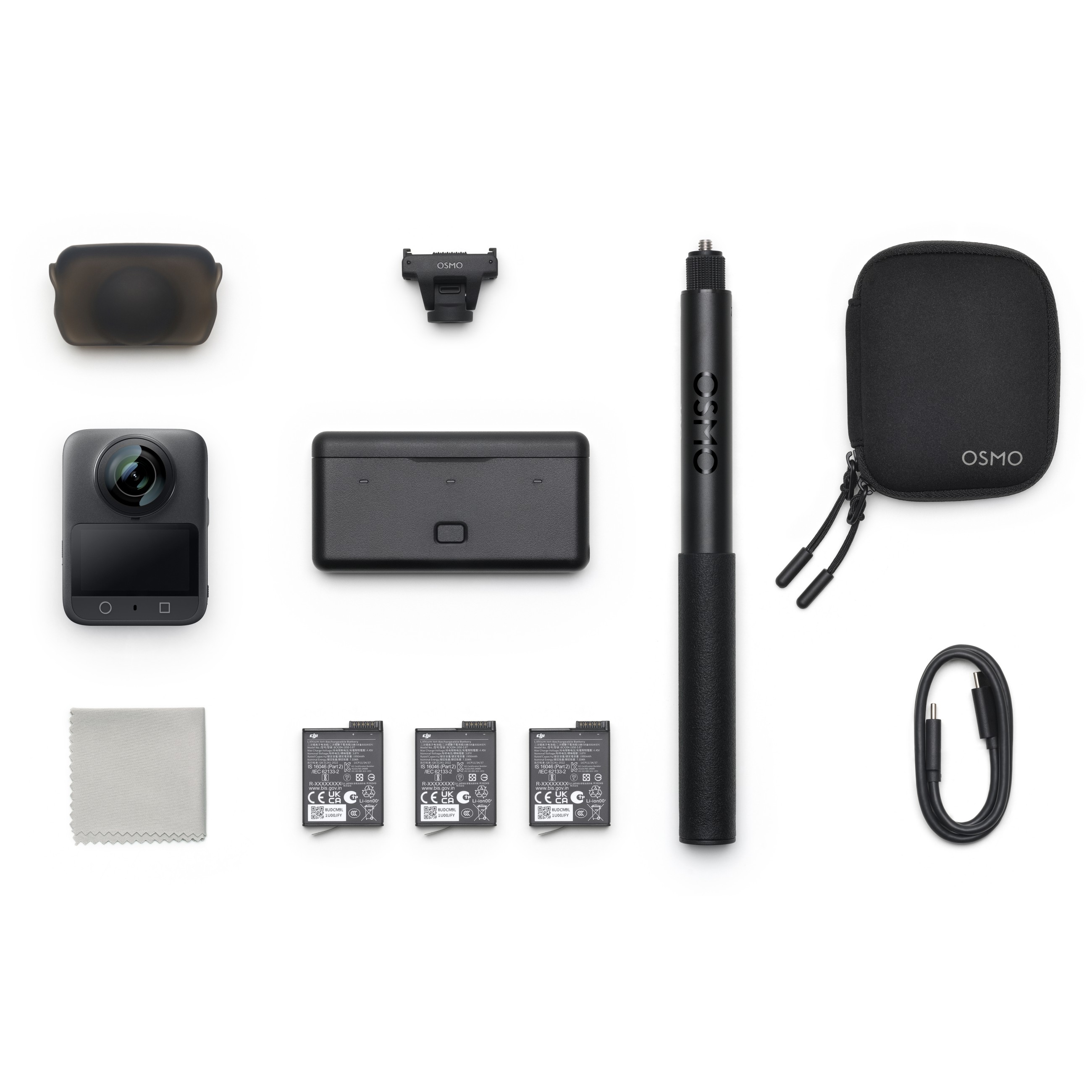 DJI Osmo 360. HD-Typ: 8K Ultra HD, Maximale Video-Auflösung: 7680 x 3840 Pixel, Maximale Framerate: 240 fps. Sensor-Typ: CMOS, Megapixel insgesamt: 120 MP, Größe des Bildsensors: 25,4 / 1,1 mm (1 / 1.1"). Bildschirmdiagonale: 5,08 cm (2"), Display-Auflösung: 314 x 556 Pixel. Bildstabilisator Typ: Electronic Image Stabilization (EIS). Audioaufzeichnungsformate: MP4