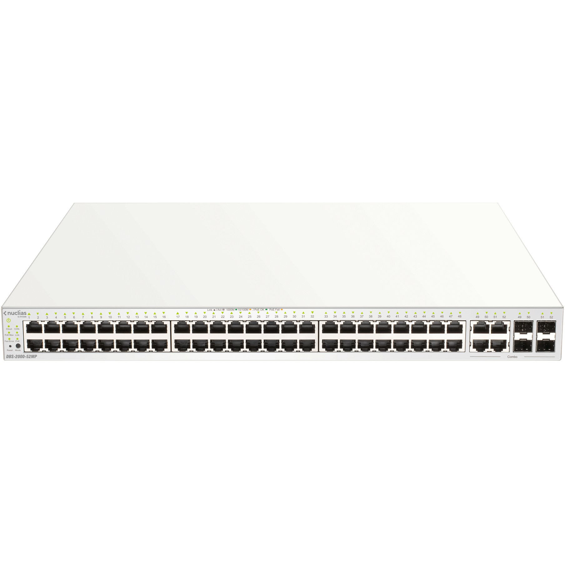 D-Link DBS-2000-52MP. Switch-Typ: Managed, Switch-Ebene: L2. Basic Switching RJ-45 Ethernet Ports-Typ: Gigabit Ethernet (10/100/1000), Anzahl der basisschaltenden RJ-45 Ethernet Ports: 48, Konsolen-Port: RJ-45. Routing-/Switching-Kapazität: 104 Gbit/s. Netzstandard: IEEE 802.3ad, IEEE 802.3at. Power over Ethernet (PoE). Rack-Einbau