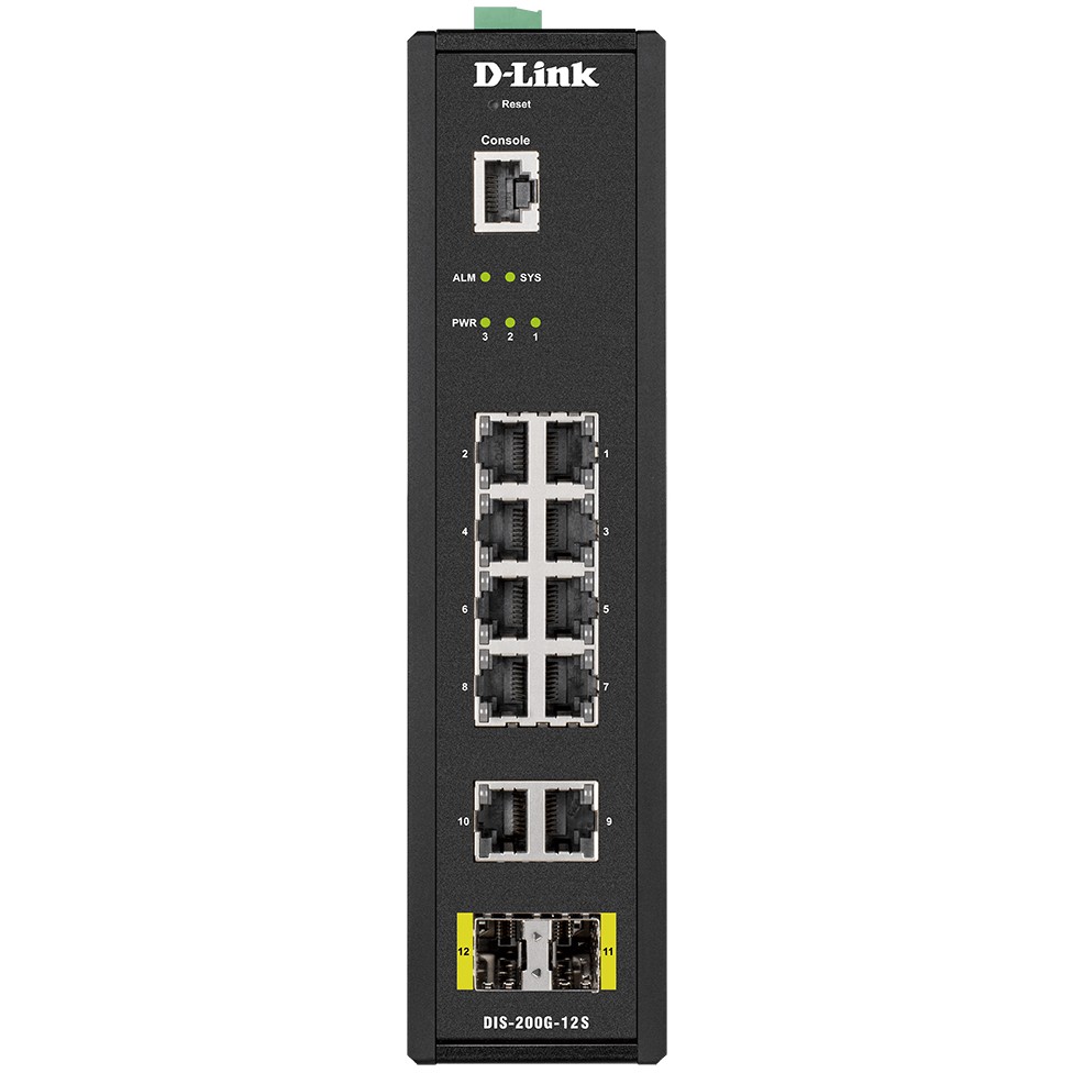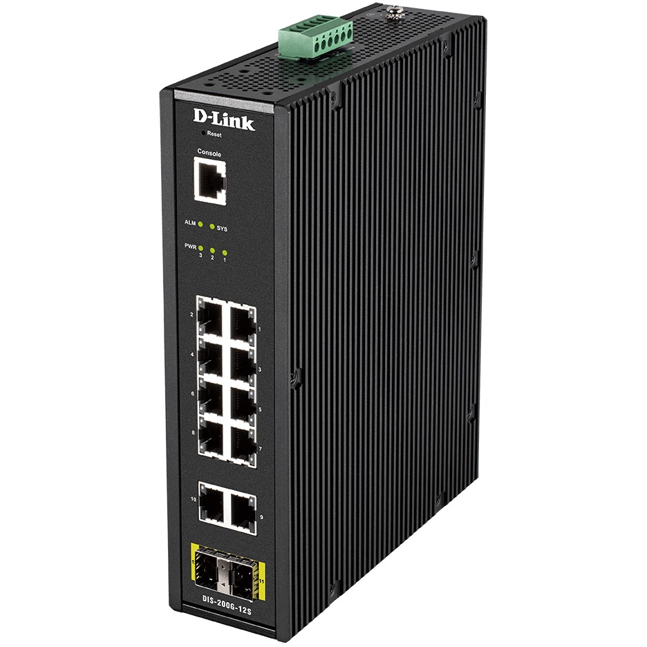D-Link DIS-200G-12S. Switch-Typ: Managed, Switch-Ebene: L2. Basic Switching RJ-45 Ethernet Ports-Typ: Gigabit Ethernet (10/100/1000), Anzahl der basisschaltenden RJ-45 Ethernet Ports: 10, Konsolen-Port: RJ-45. Vollduplex. MAC-Adressentabelle: 8000 Eintragungen, Routing-/Switching-Kapazität: 24 Gbit/s. Netzstandard: IEEE 802.1D, IEEE 802.1Q, IEEE 802.1p, IEEE 802.1s, IEEE 802.1w, IEEE 802.1x, IEEE 802.3, IEEE.... DC input Spannung: 12 - 48 V. Wandmontage, Rack-Einbau