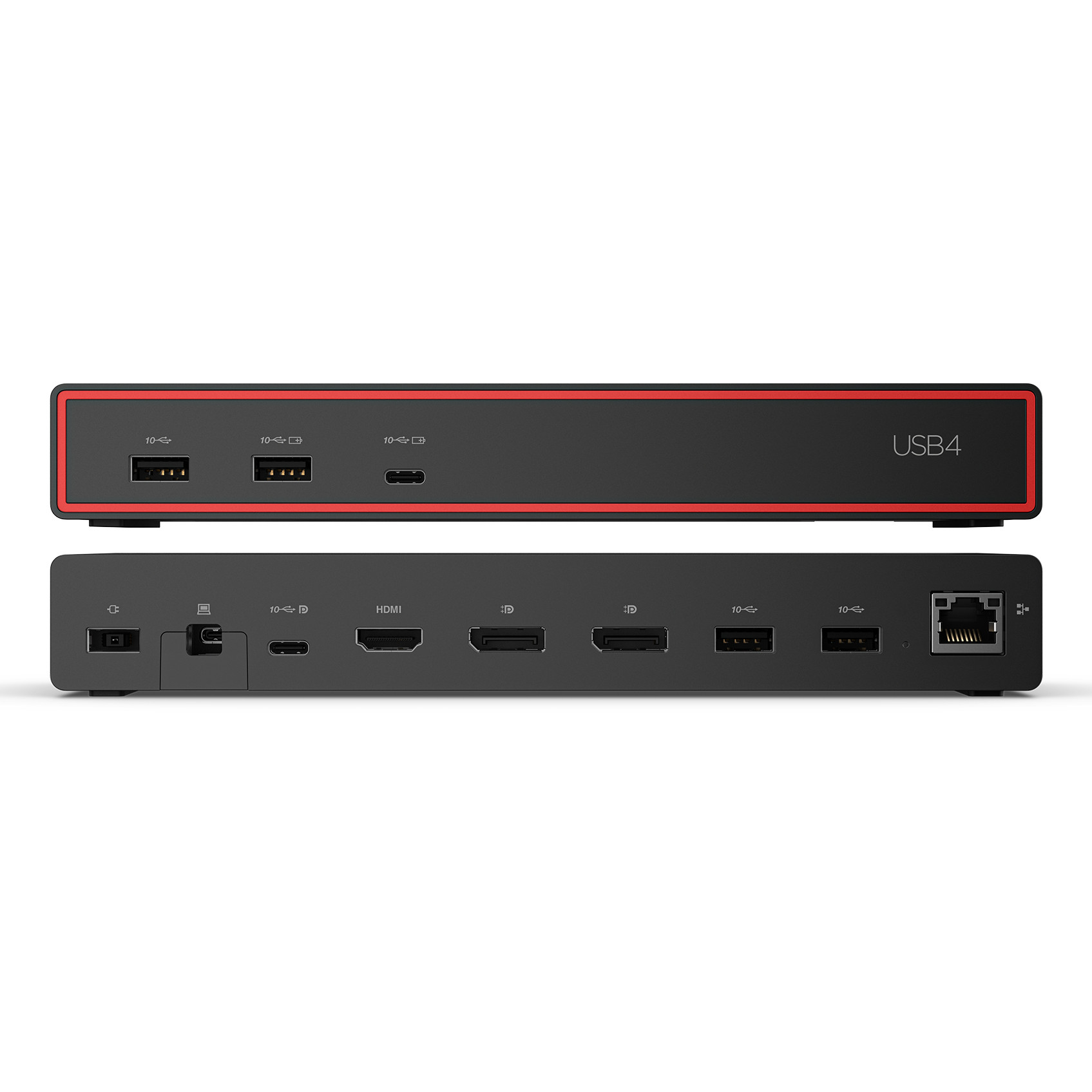 Die Lenovo™ ThinkPad® USB4 Dock 5000 wurde entwickelt, um die alltägliche Produktivität zu steigern und ist der Nachfolger unserer berühmten Universal USB-C Dock , die mit modernster USB4-Technologie ausgestattet ist. Die Andockstation kann über eine USB4-Upstream-Verbindung mit 40 Gbit/s Bandbreite an Ihr Notebook angeschlossen werden, sodass Sie Ihr Monitor-Setup mit mehr Pixeln und höheren Bildwiederholraten erweitern können. Mit einem 100-W-Netzteil können Sie eine Ladeleistung von 65 W an Ihr Notebook abgeben. Sie können sich aber auch für ein 135-W-Netzteil entscheiden, um die Ladeleistung Ihres Notebooks auf bis zu 100 W zu erhöhen.