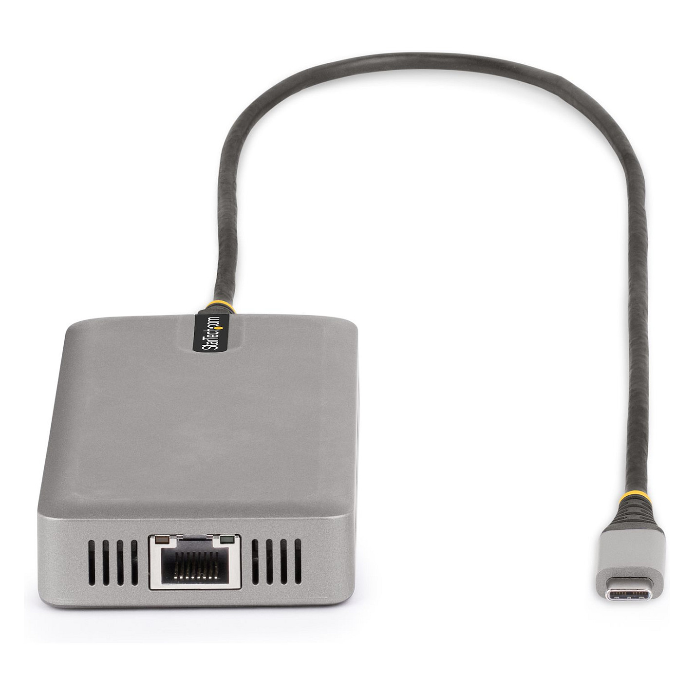 Die Mini-Dockingstation verfügt über ein integriertes 60 cm USB-C Host-Kabel mit hochwertiger TPE-Ummantelung und Zugentlastung, um die Robustheit und Lebensdauer zu steigern. Das Gehäuse des Multiport-Adapters verfügt über eine integrierte EMI-Abschirmung, um die Hauptplatine und die integrierten Chips vor elektromagnetischen Störungen zu schützen und so Signalstörungen zwischen elektronischen Geräten zu verhindern und eine zuverlässige Performance zu gewährleisten.