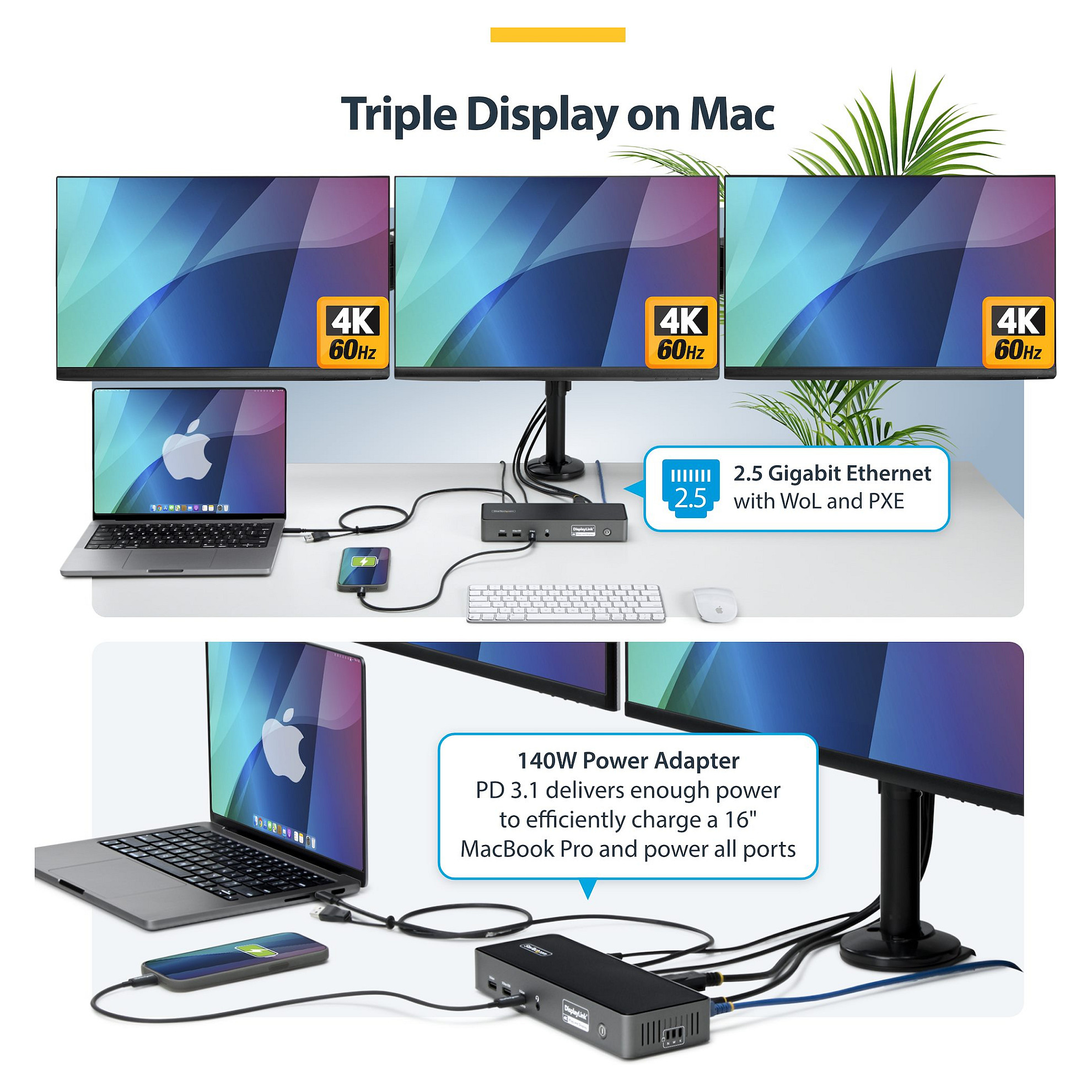 Universelle Dockingstation für Drei Monitore - kompatibel mit macOS, Windows und ChromeOS