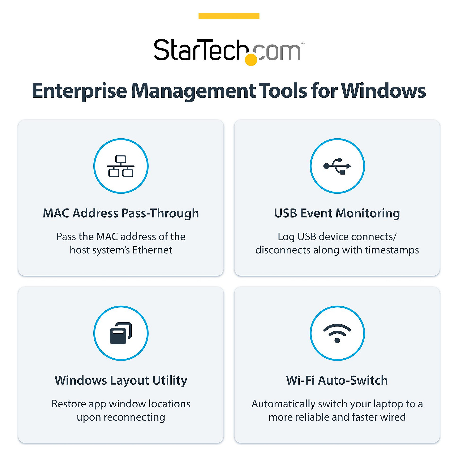 Diese universelle Dockingstation bietet hochauflösende Displayunterstützung und breite Betriebssystemkompatibilität - für eine vereinfachte Geräteverwaltung und ein optimiertes Nutzererlebnis. Ideal für moderne professionelle Arbeitsumgebungen wie Hot Desks und gemischte Geräteeinsätze.