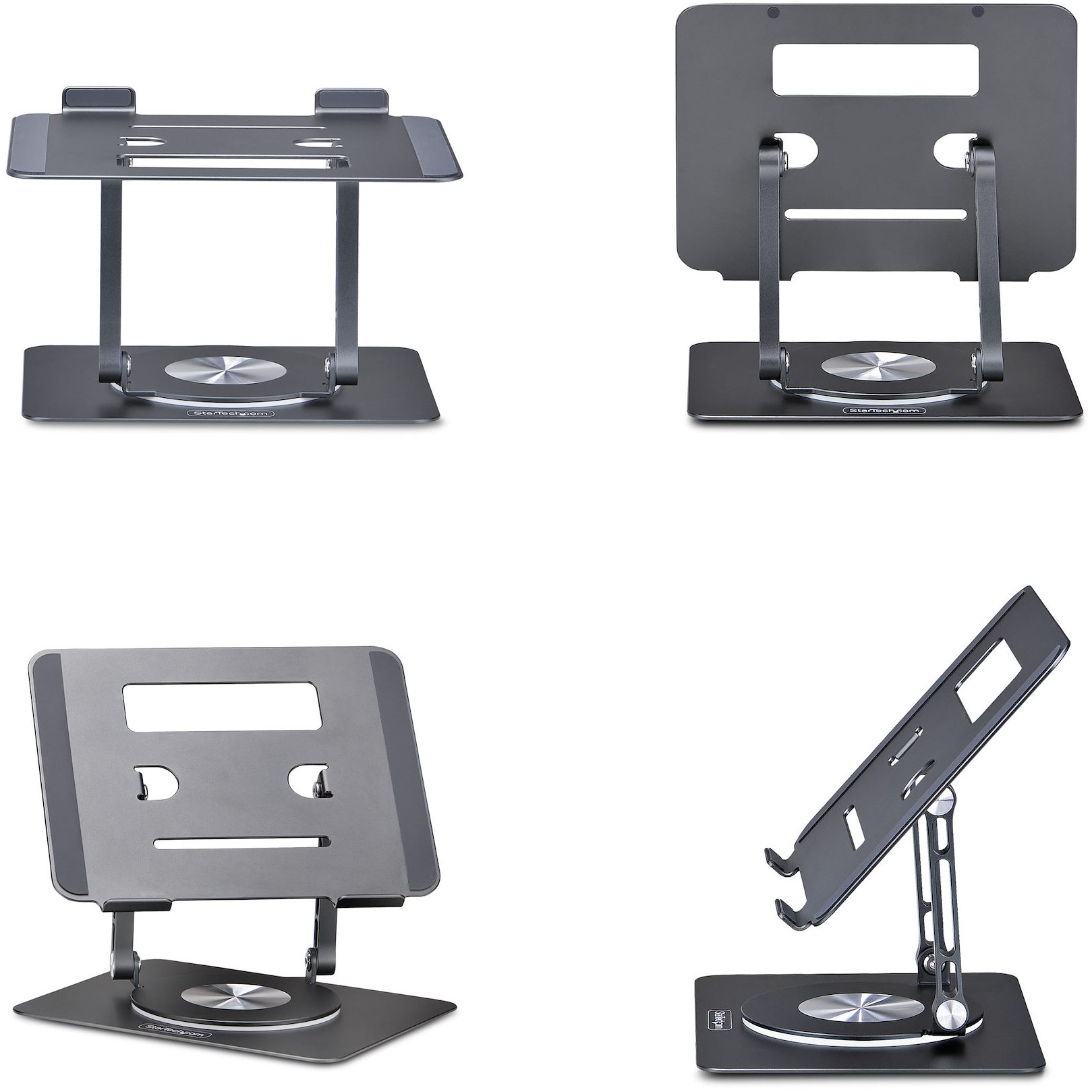 Dieser rotierende Laptopständer hebt Laptops in eine natürlichere Arbeitsposition. Eine kompakte und ergonomische Lösung für mehr Komfort am Arbeitsplatz. Ideal für Schreibtische zu Hause, im Büro oder unterwegs.