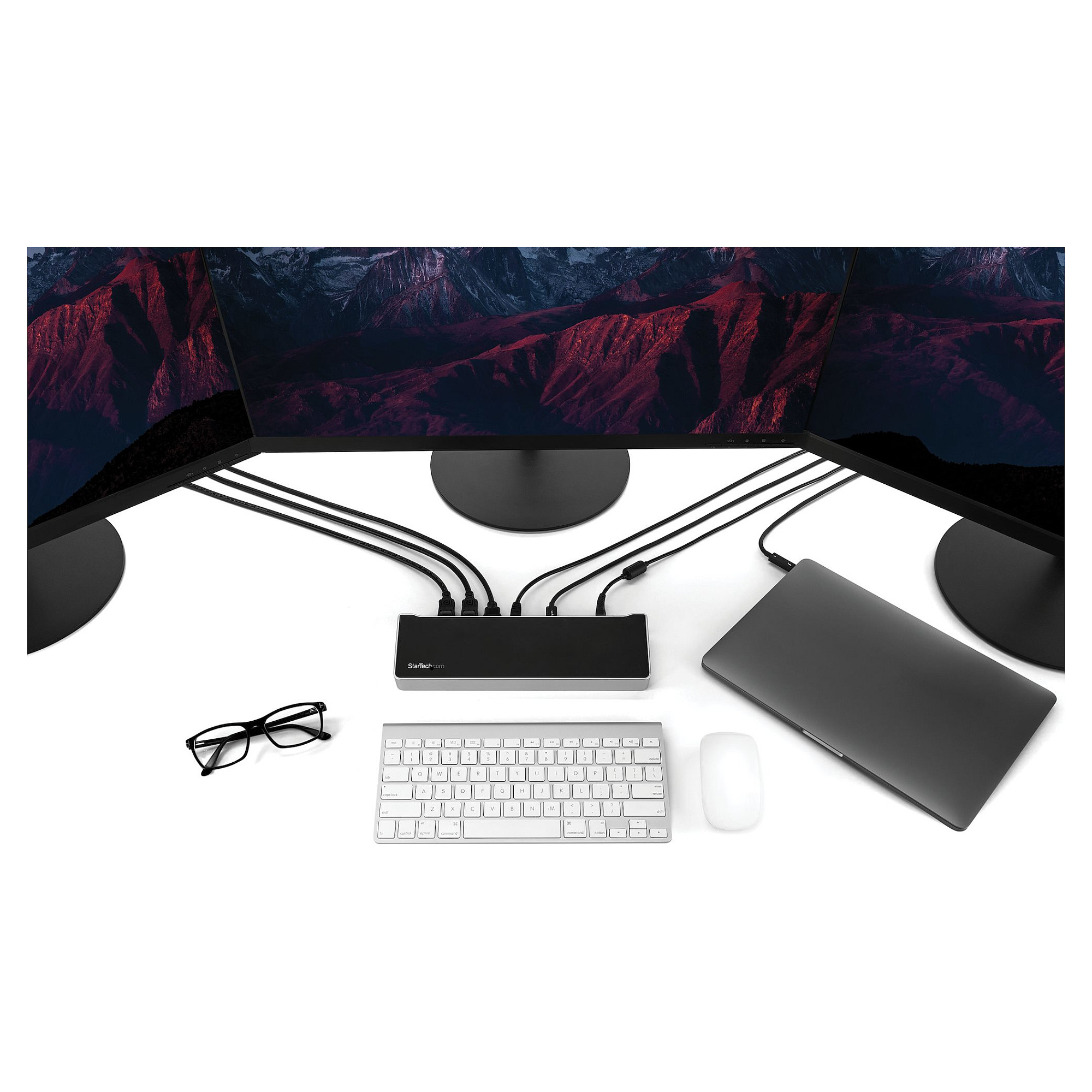 Mit diesem 4K-Dreifachdock für Mac-, Windows- und Chrome-USB-C-Notebooks können Sie Ihre Produktivität steigern. Dank drei 4K-Videoverbindungen, 100 W Power Delivery und fünf USB 3.0-Anschlüssen ist dieses USB-C-Dock perfekt für MacBook, Dell XPS, Chromebook oder ein anderes USB-C-Notebook geeignet. Zusätzliche Anschlüsse sind nicht erforderlich.