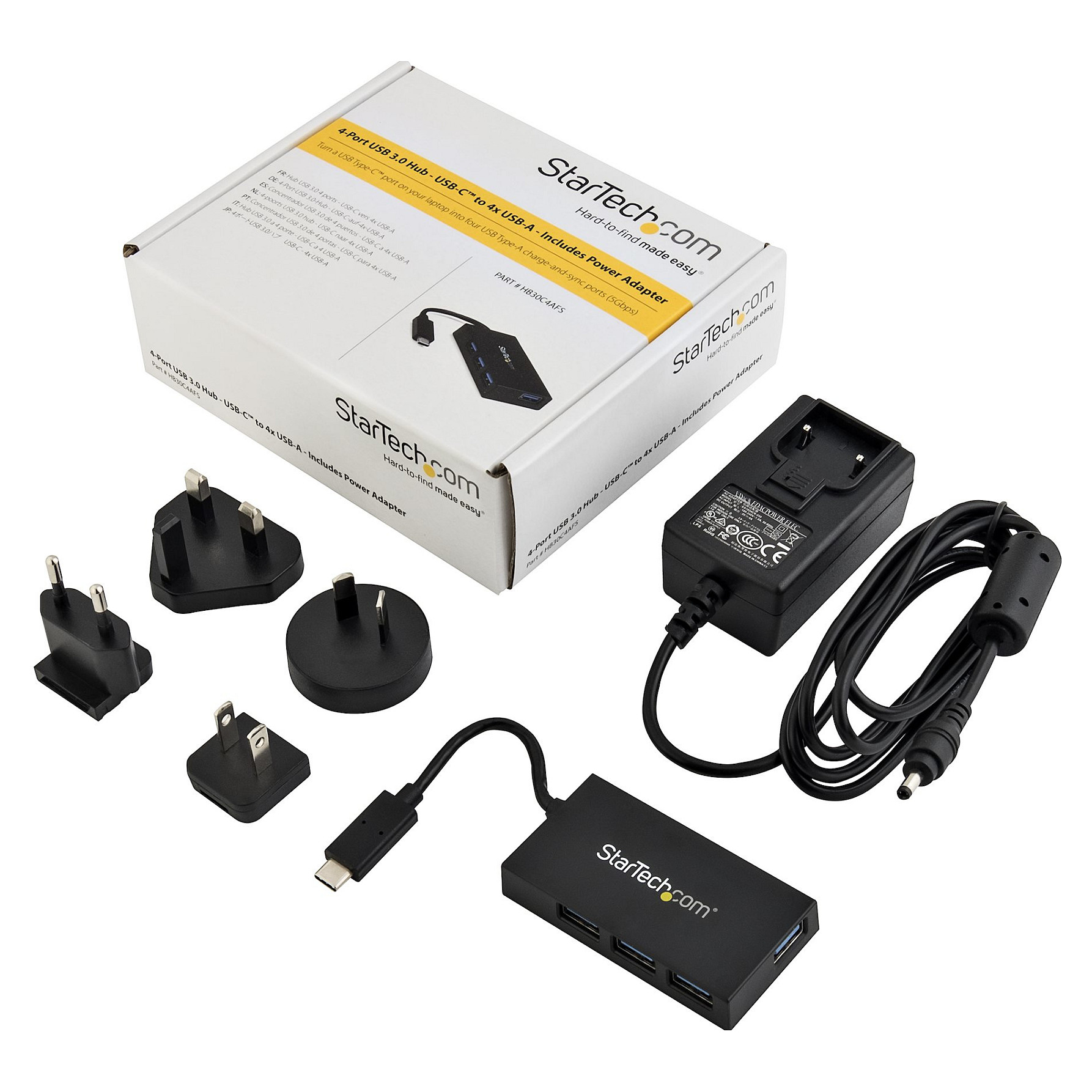Mit diesem kompakten USB 3.0-Hub erweitern Sie Ihre Konnektivität um vier USB Type-A-Ports über einen einzigen USB Type-C™- oder Thunderbolt™ 3-Port. Dank des mitgelieferten 20-Watt-Stromadapters können Sie leistungshungrige USB-Geräte anschließen und Ihre Mobilgeräte mittels der USB-Lade- und Synchronisierungs-Ports schnell laden.