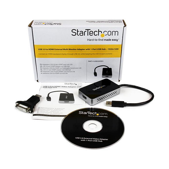 Der Adapter nutzt die hohe Bandbreite (5 Gbit/s) der SuperSpeed USB 3.0-Schnittstelle und liefert nahtlos High Definition-Inhalte an Ihr HDMI-Display oder -Projektor. Der Adapter kann verwendet werden, um den primären Desktop zu spiegeln, dasselbe Bild auf jedem Display anzuzeigen oder den Desktop zum Verdoppeln der Arbeitsfläche und Erhöhen der Produktivität zu erweitern. Dank des mitgelieferten HDMI-auf-DVI-Adapters können Sie dieses Gerät mit einem DVI-Display verwenden.