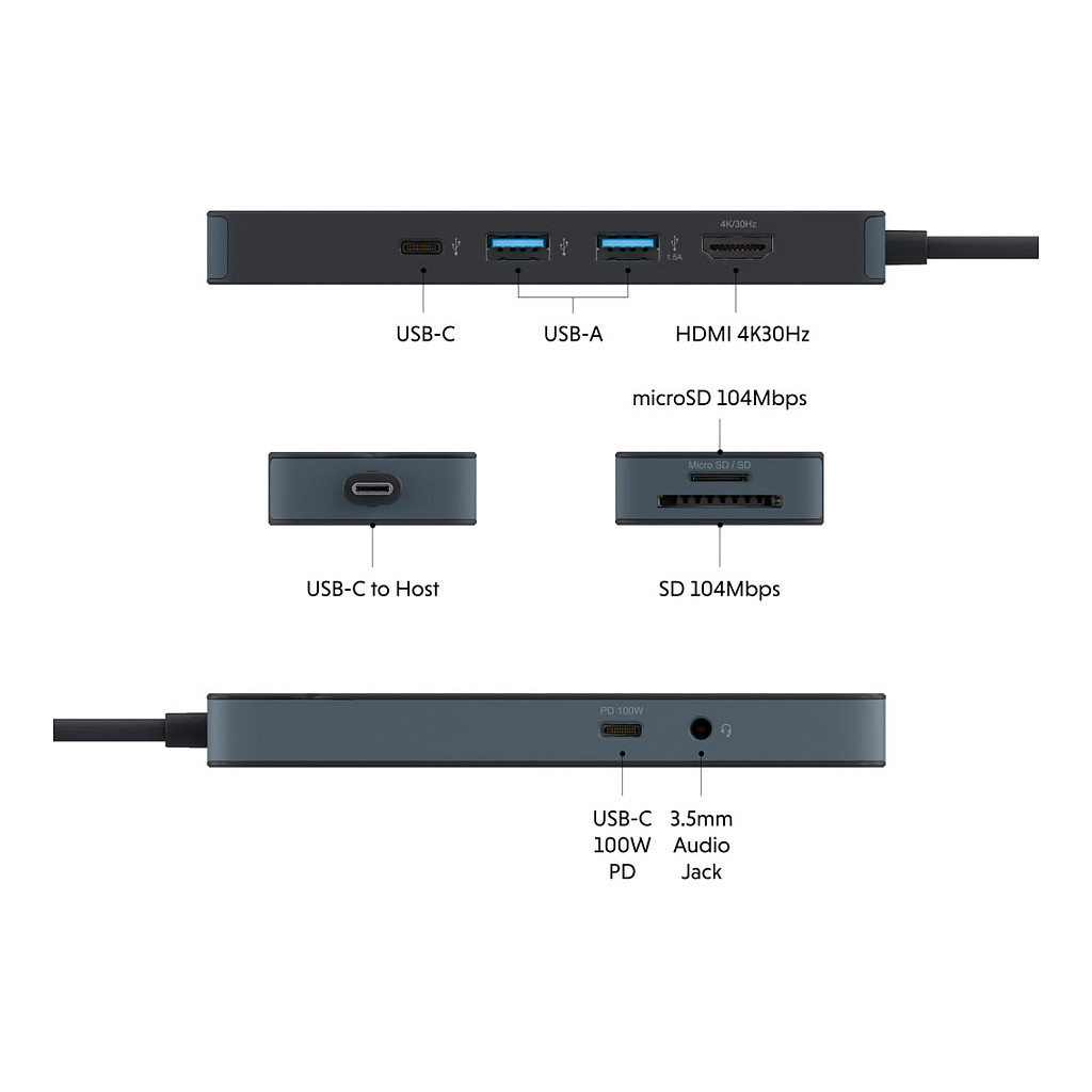 Hub-Schnittstellen: 3.5mm, HDMI, USB 3.2 Gen 1 (3.1 Gen 1) Type-A, USB 3.2 Gen 1 (3.1 Gen 1) Type-C