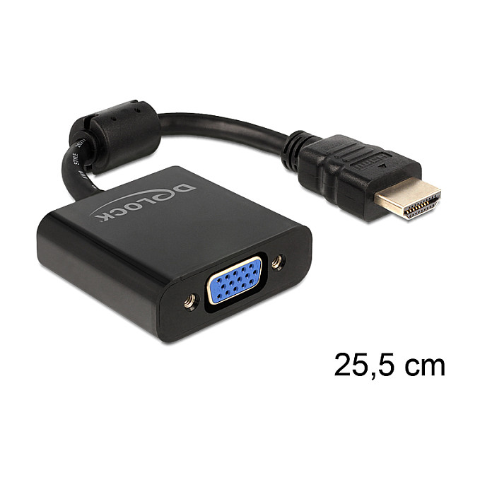 Mit diesem Adapter von Delock können Sie z. B. einen VGA Monitor über eine freie HDMI Schnittstelle Ihres Systems anschließen.