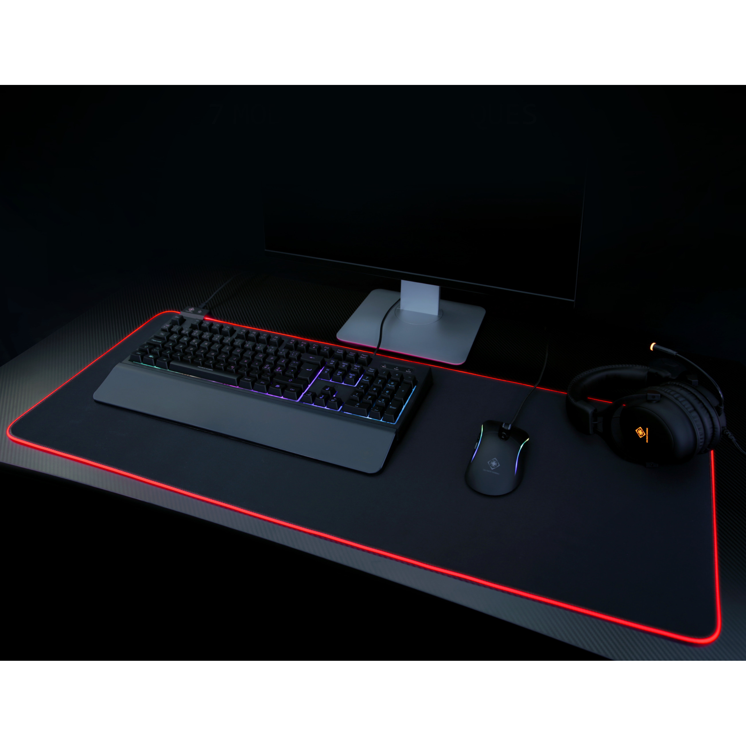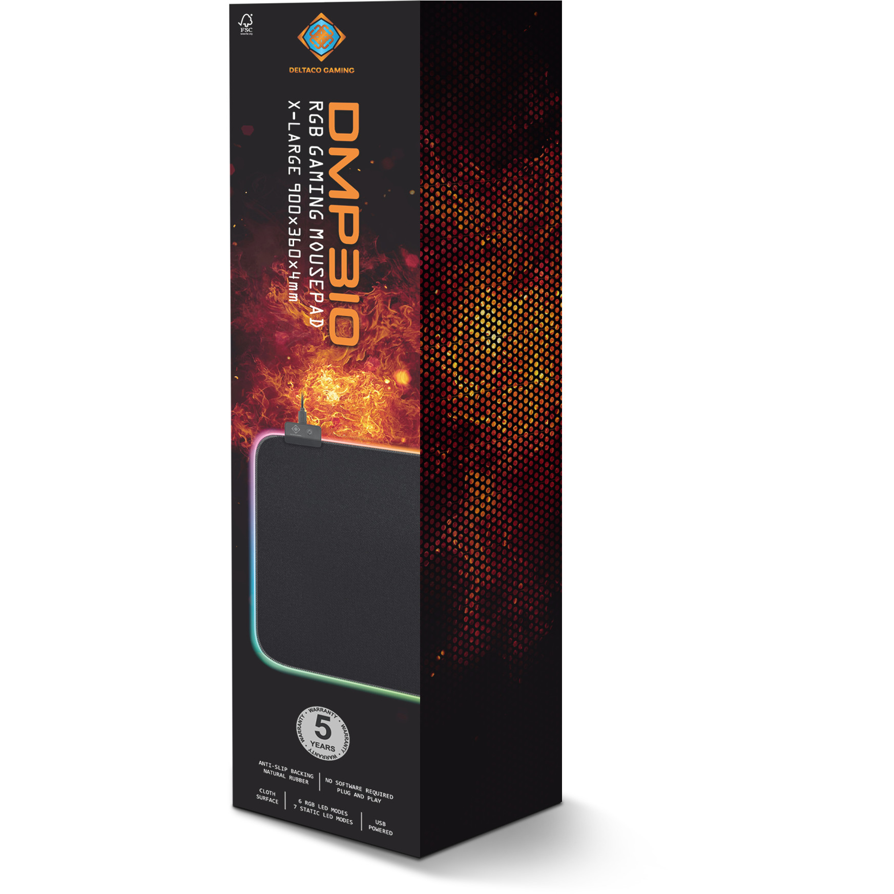Deltaco Gaming GAM-079. Breite: 900 mm, Tiefe: 360 mm. Produktfarbe: Schwarz, Oberflächenfärbung: Einfarbig, Material: Gummi, USB, Farbe der Hintergrundbeleuchtung: Mehrfarbig, Anti-Rutsch-Basis, Gaming-Mauspad