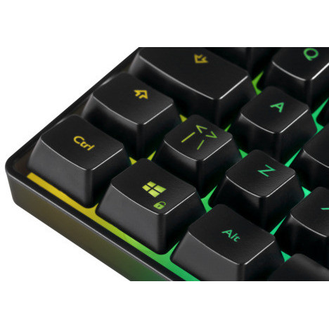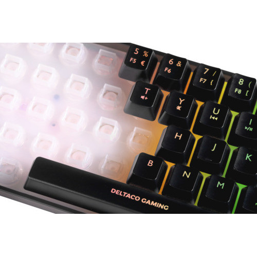 Deltaco Gaming GAM-158-DE. Tastatur Formfaktor: 60%, Übertragungstechnik: Kabelgebunden, Geräteschnittstelle: USB, Tastatur-Switch: Membran Key Switch, Tastaturaufbau: QWERTZ, Tastatur - Tastenanzahl: 69. Typ der Hintergrundbeleuchtung: RGB-LED. Kabellänge: 1,8 m. Empfohlene Nutzung: Gaming. Produktfarbe: Schwarz