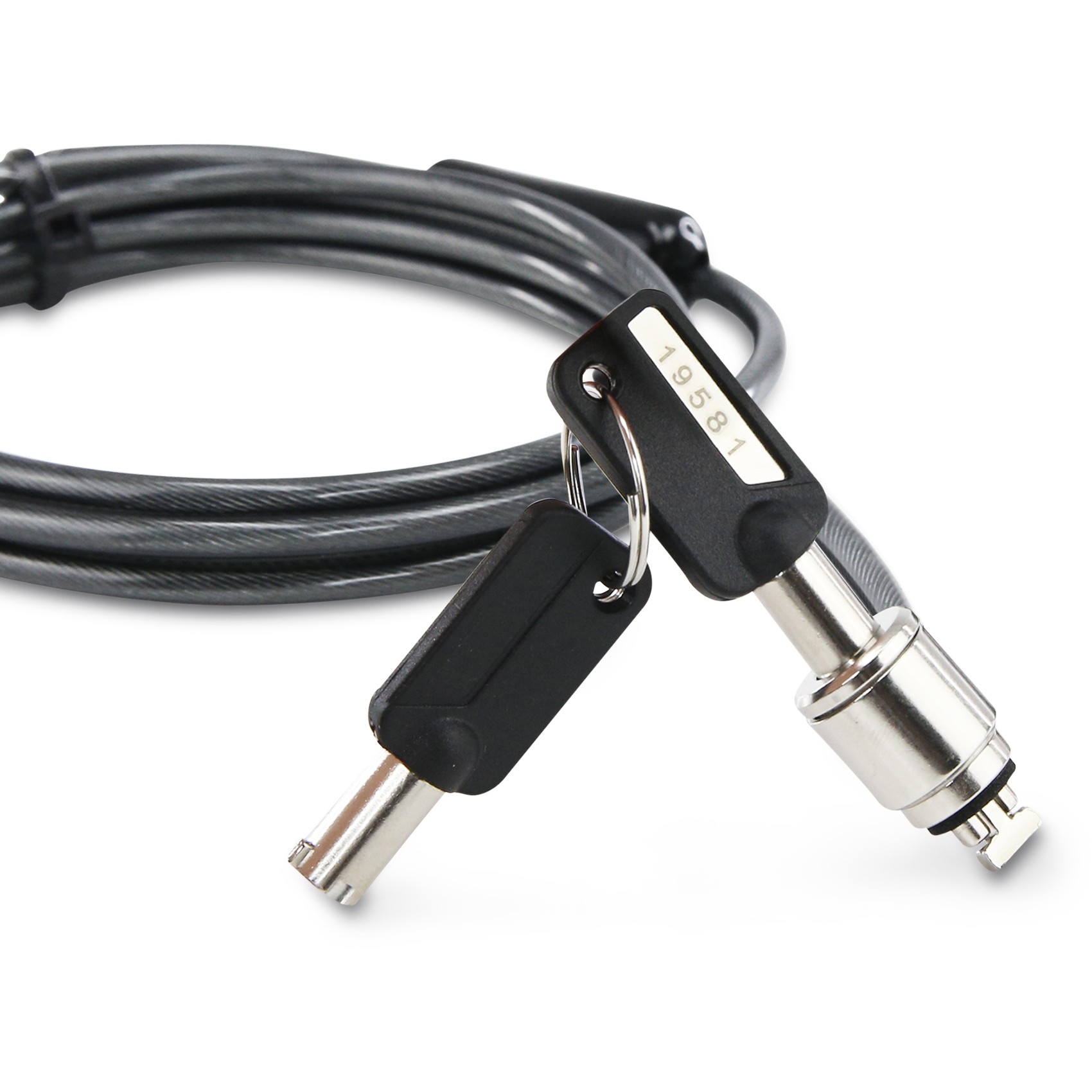 Notebooks sowie Beamer, Monitore und Drucker können mit den BASE XX-Schließsystemen effektiv gesichert werden. Das Cable T-Lock eignet sich für alle Modelle mit dem gängigen 3 x 7 mm Schlitz und ist kompatibel mit dem Kensington Security Slot für T-Bar*. Flexible Arbeitsplatzgestaltung dank drehbarem Kopf. Das ummantelte, mehrsträngige Stahlseil ist 1,5 m lang und hat einen Durchmesser von 4,0 mm. Der funktionelle Klettverschluss ermöglicht das Aufrollen des Kabels zur kompakten Aufbewahrung und zum Transport. Zwei Schlüssel sind im Lieferumfang enthalten. Dieses Schloss ist eine Standalone-Version und kann nicht in ein größeres Schließsystem integriert werden. *T-Bar™ ist eine Marke eines Drittanbieters ohne Verbindung zu BASE XX.