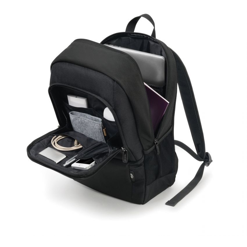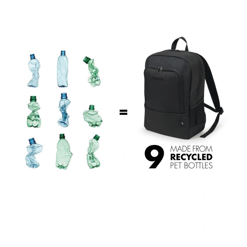 Der handliche Rucksack schützt Ihr Laptop mit den Grössen 13-14.1" optimal dank dem mit High-Density Foam (HDF) gepolstertem Notebookfach. Als Leichtgewicht unter den Notebook-Rucksäcken garantiert er flexible Mobilität. Das geräumige Hauptfach ist so unterteilt, dass Dokumente und Zubehör getrennt verstaut werden können. Die Vordertasche mit praktischen Einsteckfächern schafft Ordnung in Ihrem mobilen Zubehör wie Smartphone, Stifte oder Ladegeräte. In den seitlichen, leicht zugänglichen Netztaschen finden Regenschirm und Trinkflasche ihren Platz. Alle wichtigen Dinge sind so jederzeit griffbereit. Der Rucksack liegt dank der ergonomischen Polsterung bequem am Rücken. Zur weiteren Optimierung des Komforts können ausserdem die Schultergurten nach Belieben verstellt werden. Damit ist der Eco Backpack BASE der perfekte Rucksack für alle, die viel unterwegs sind und mit einer umweltfreundlichen Tragelösung die sinnvolle Wiederverwendung von PET Flaschen unterstützen möchten.Laptop Backpack Eco BASE 13-14.1"